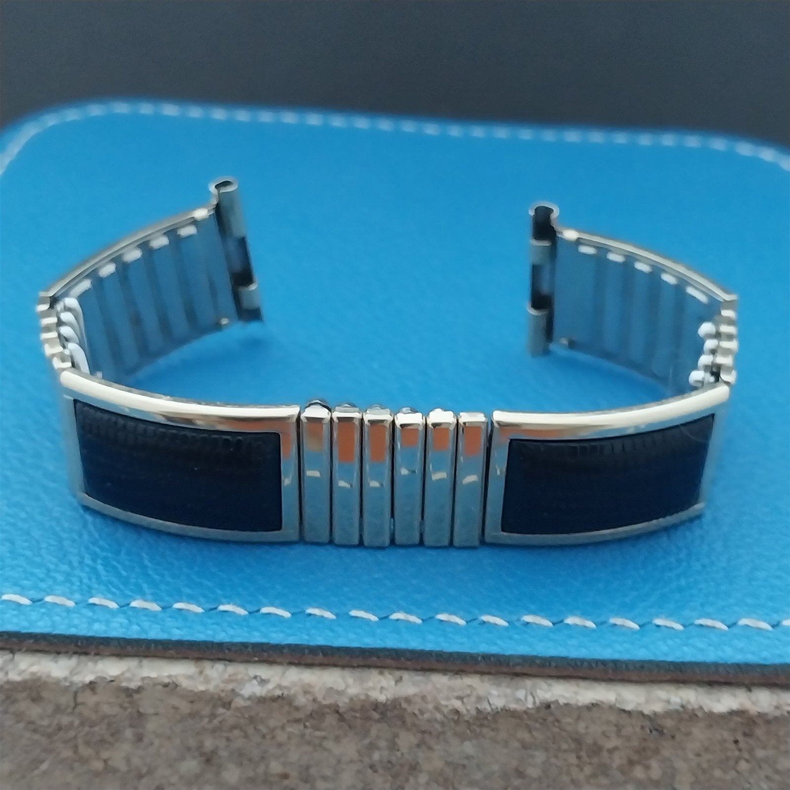 - NOS unused 1957 old-stock Speidel Calypso yellow 1/20 10kt gold-filled expansion watch bracelet with black plastic inserts.