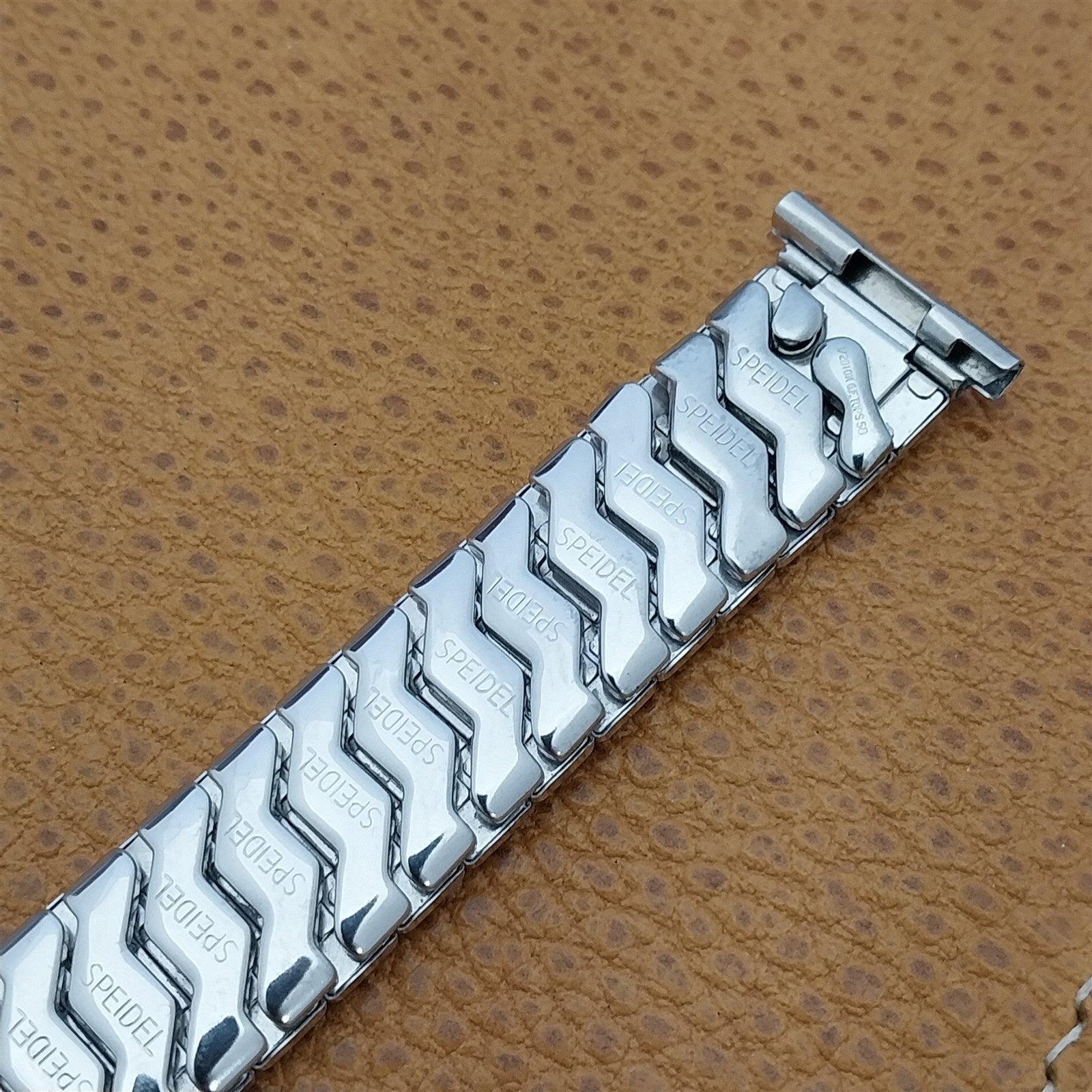 - NOS unused old-stock 1958 Speidel Bullseye 10k white gold-filled expansion watch band.