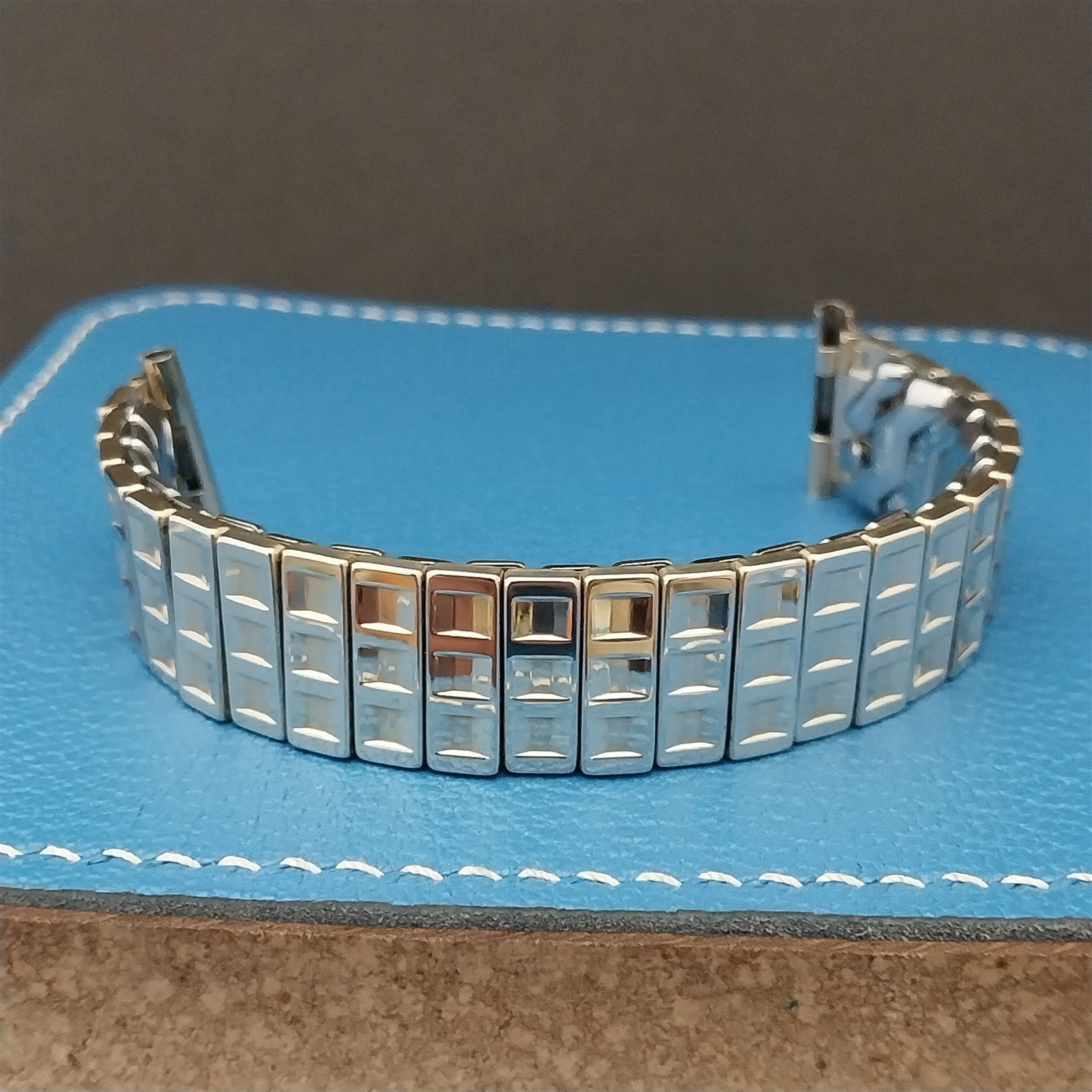 - NOS unused 1958 old-stock Speidel mid century modern 10k yellow gold-filled scissor-expansion watch bracelet.