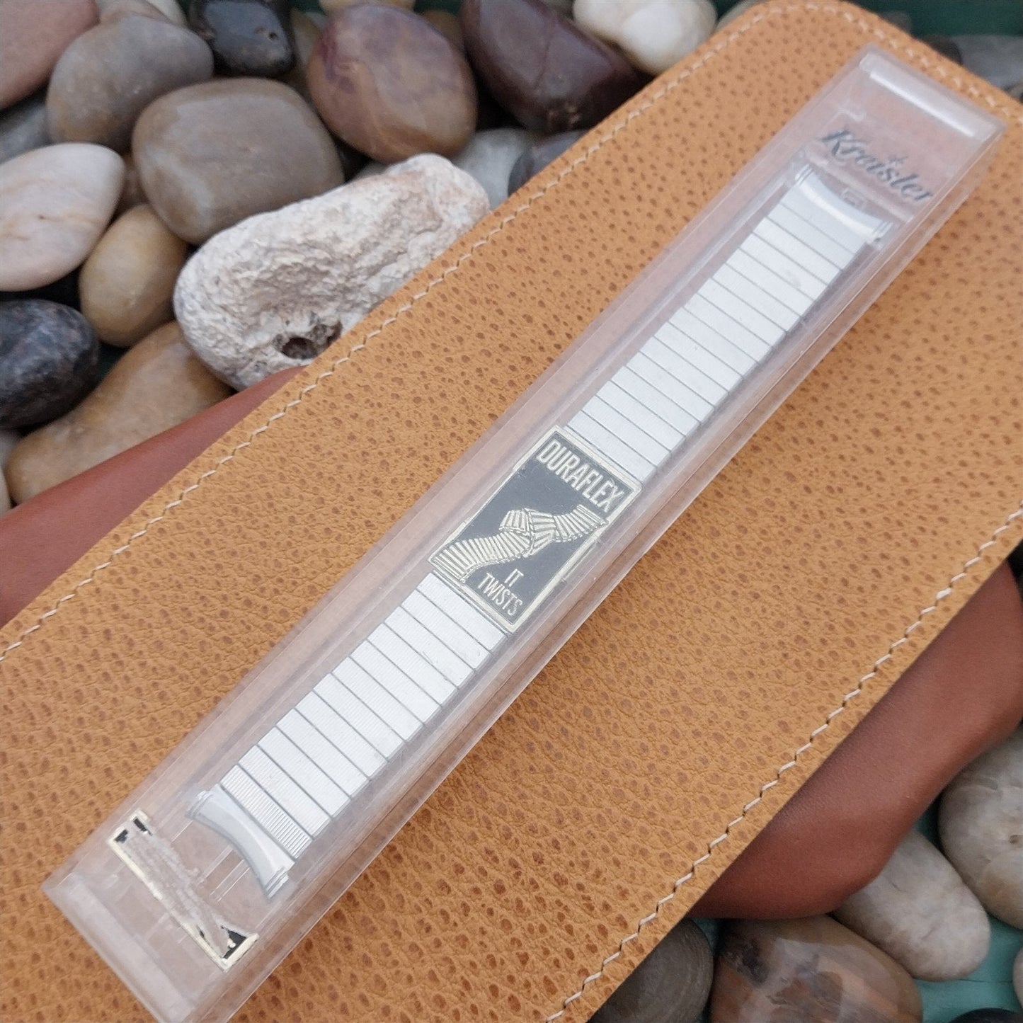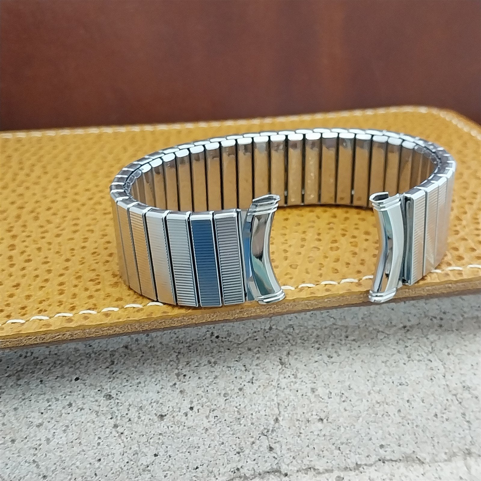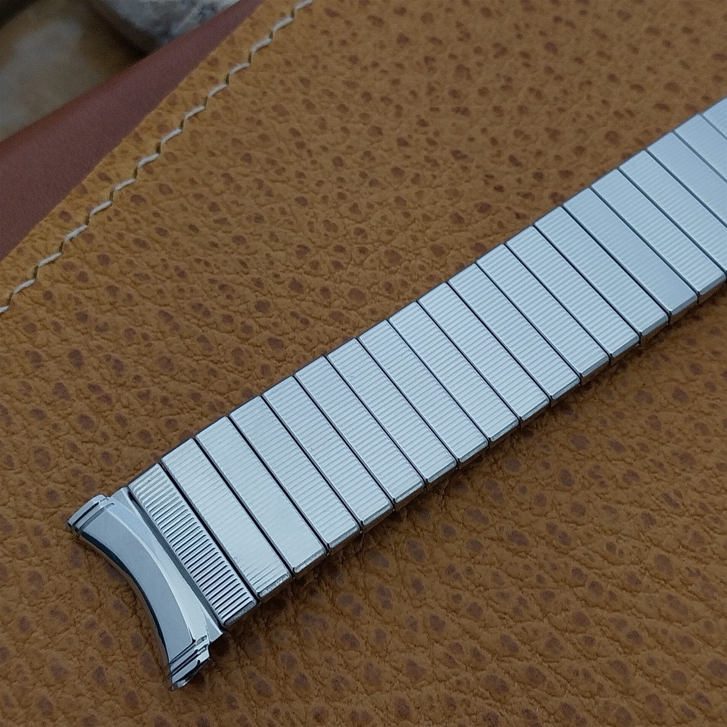 - NOS unused 1960s-1970s old-stock Kreisler stainless steel DuraFlex expansion watch bracelet.