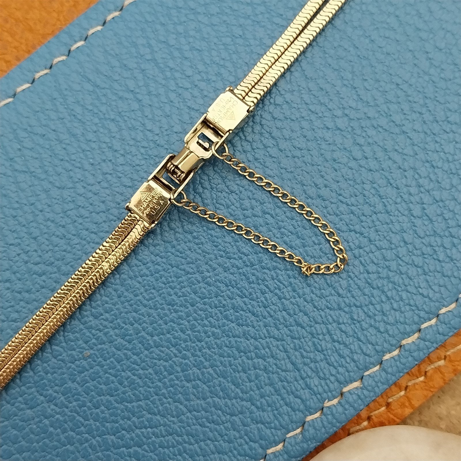 - NOS unused 1960s old-stock JB Champion 10k yellow gold-filled watch bracelet.