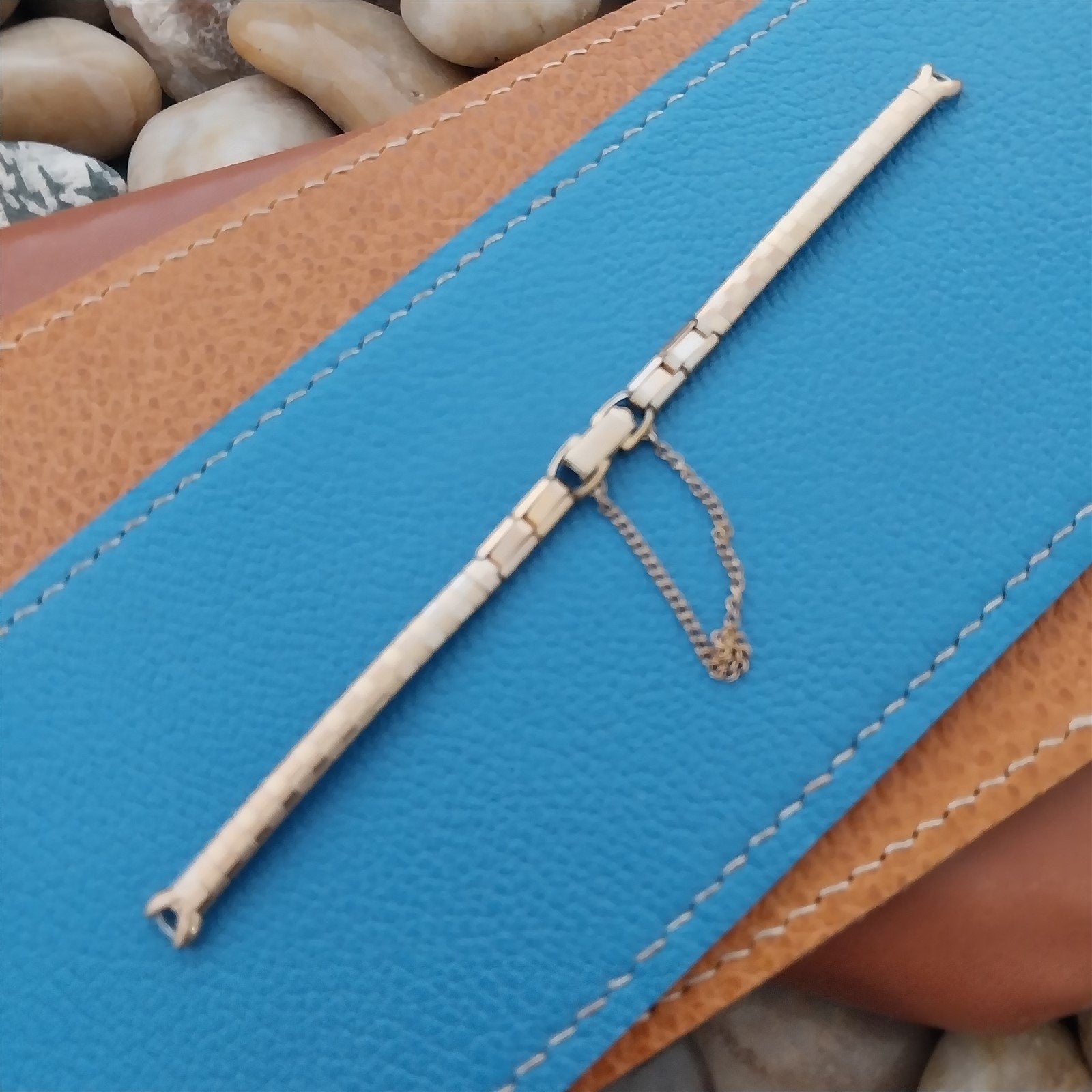 - NOS unused 1960s old-stock Speidel Harlequin 10k yellow gold-filled cocktail watch bracelet.