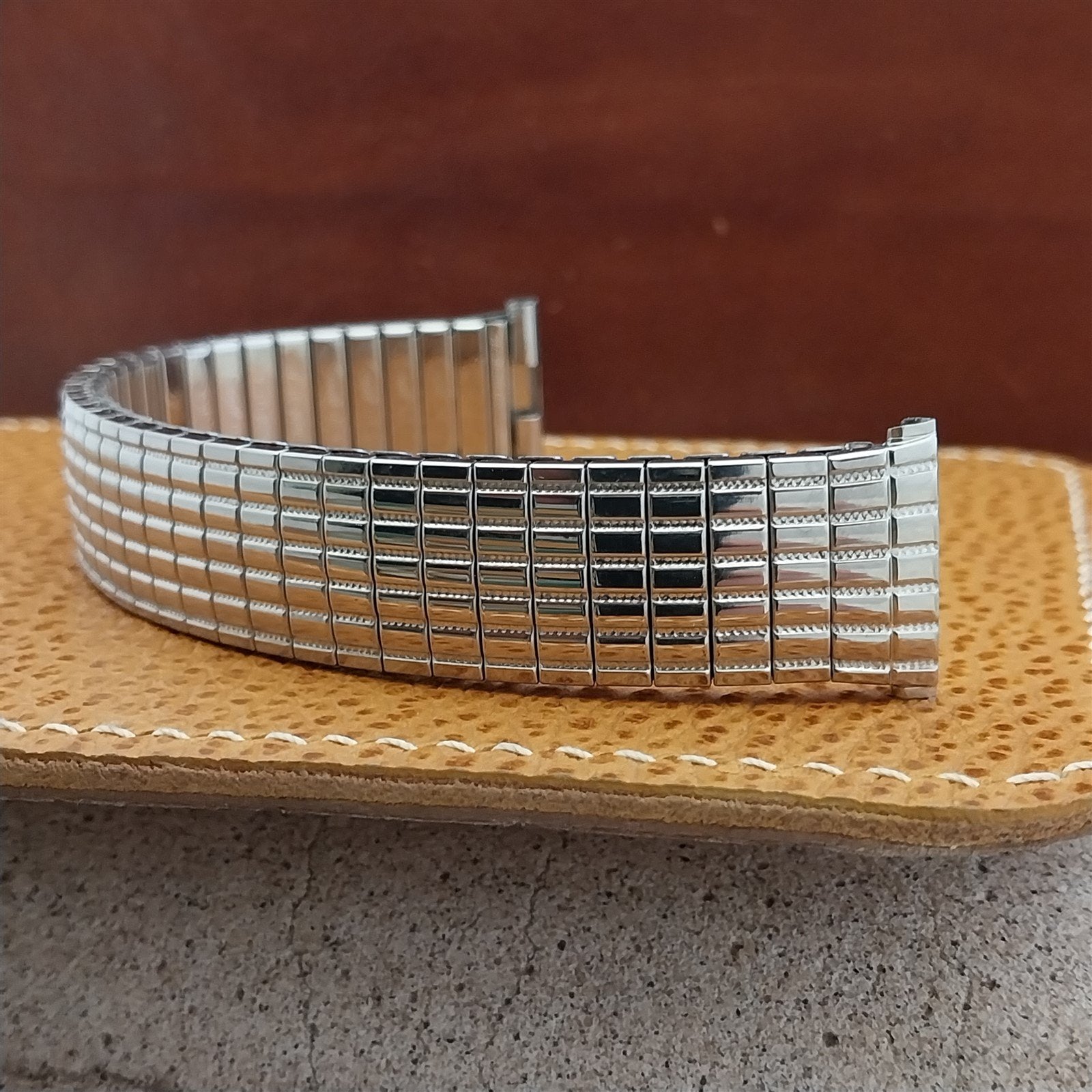 - NOS unused 1960s old-stock Speidel Tribune stainless steel Twist-O-flex expansion watch bracelet.