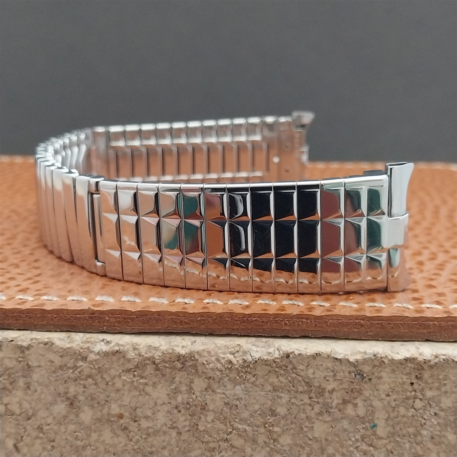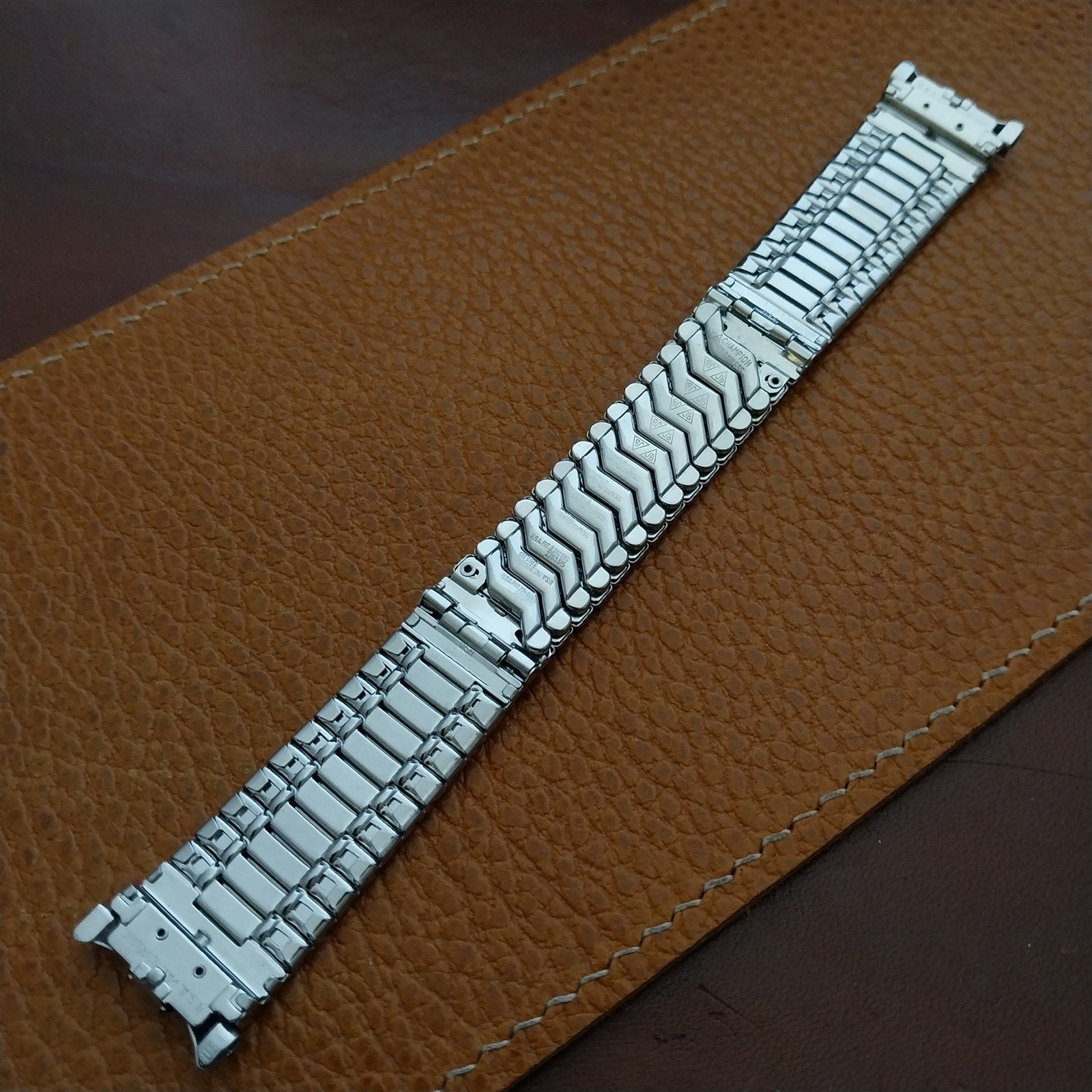 - Nos 1960s new old-stock JB Champion stainless steel center scissor-expansion watch bracelet.