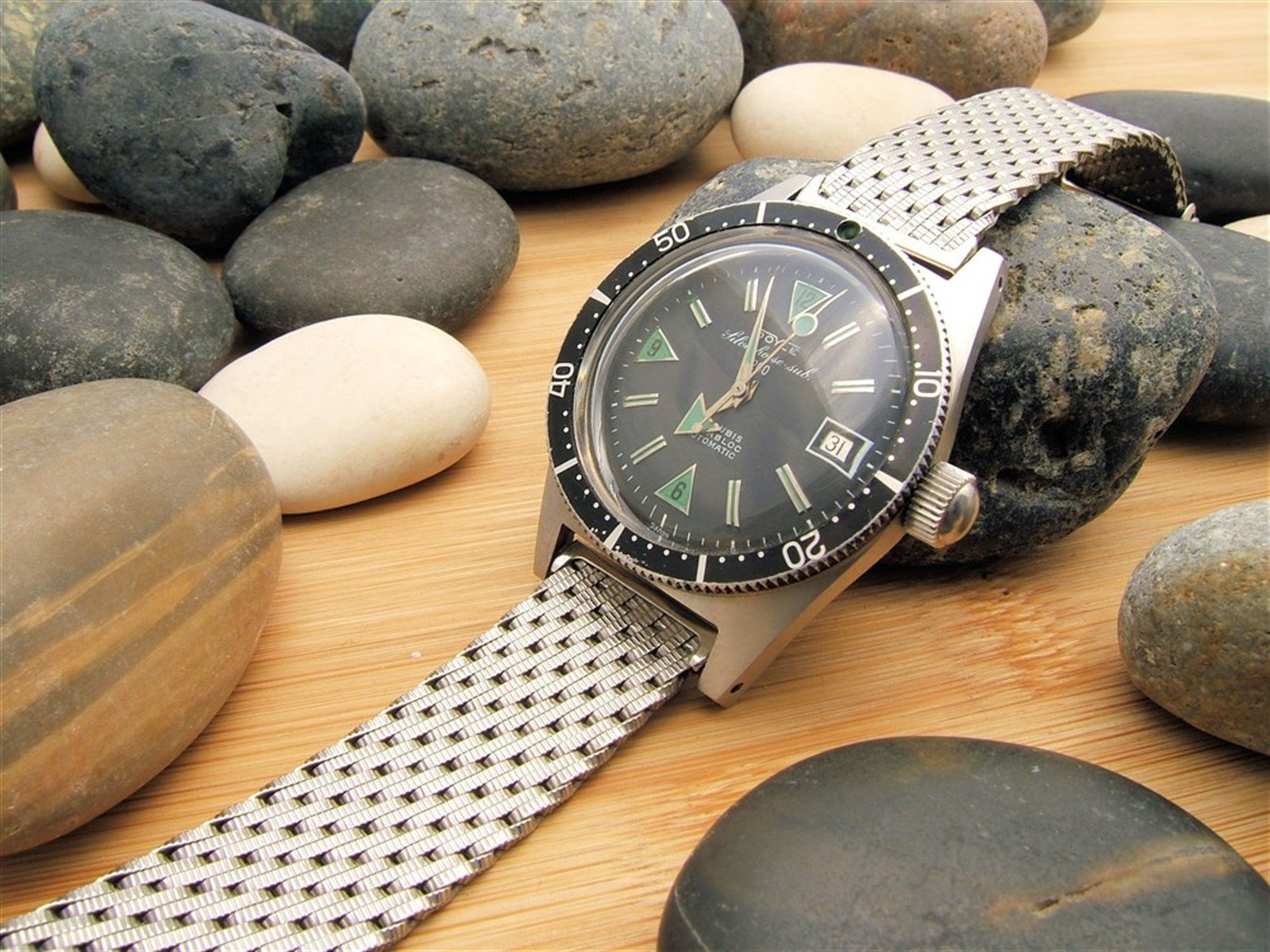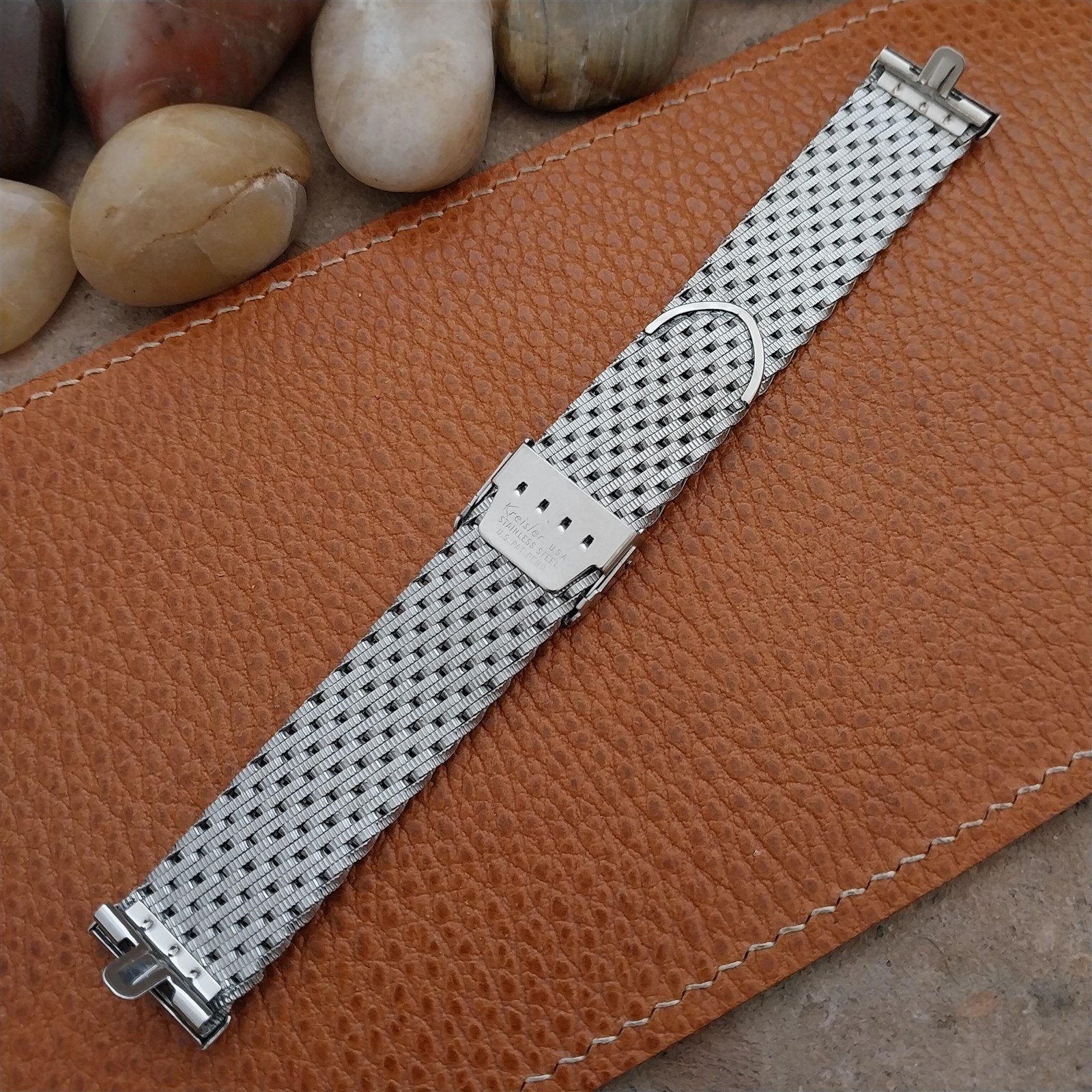 - NOS unused 1960s old-stock Kreisler stainless steel braided mesh watch bracelet.