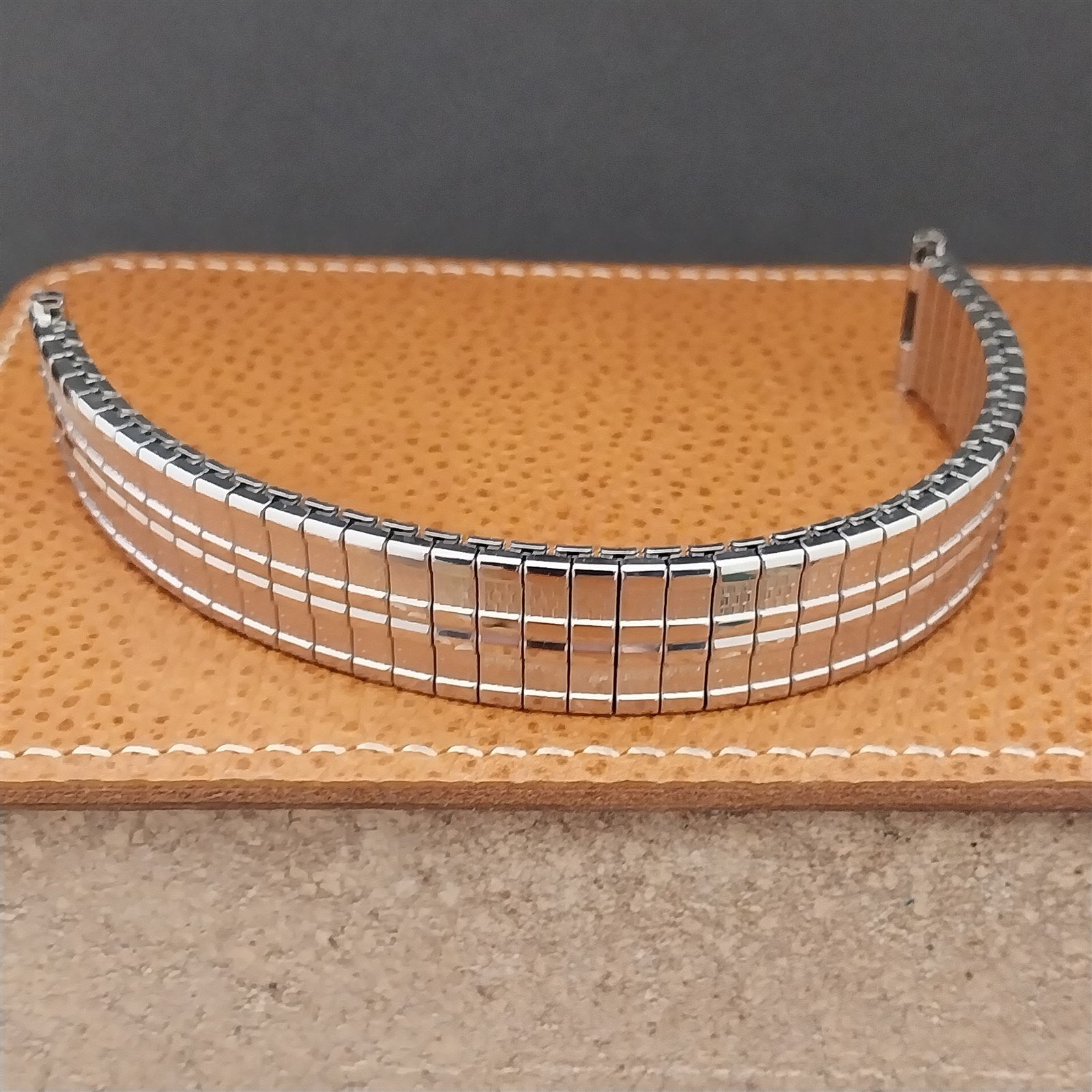 - NOS unused 1960s old-stock Speidel Meteor stainless steel expansion watch band.