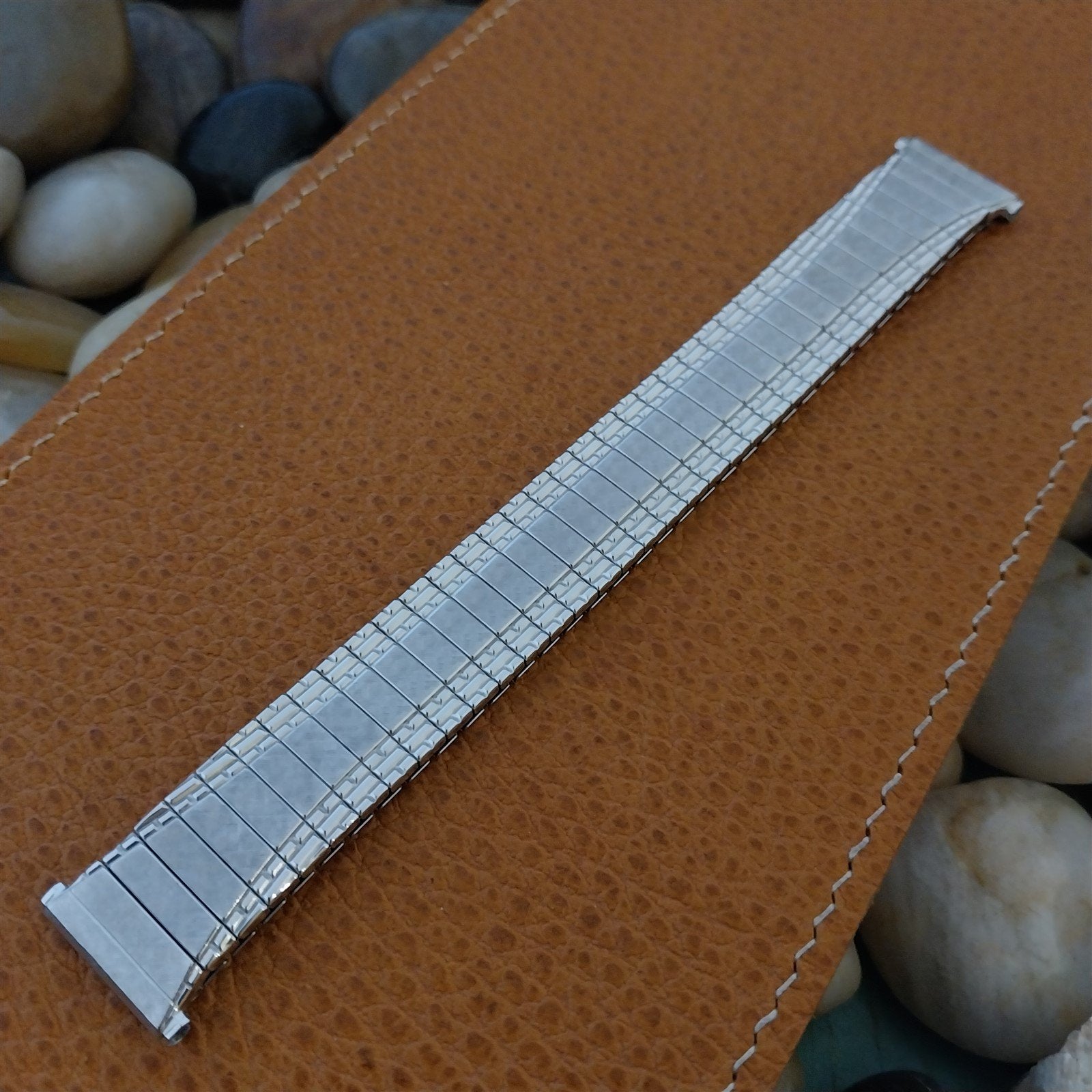 - NOS unused 1962 old-stock Speidel 10k white gold-filled short Twist-O-Flex expansion watch bracelet.
