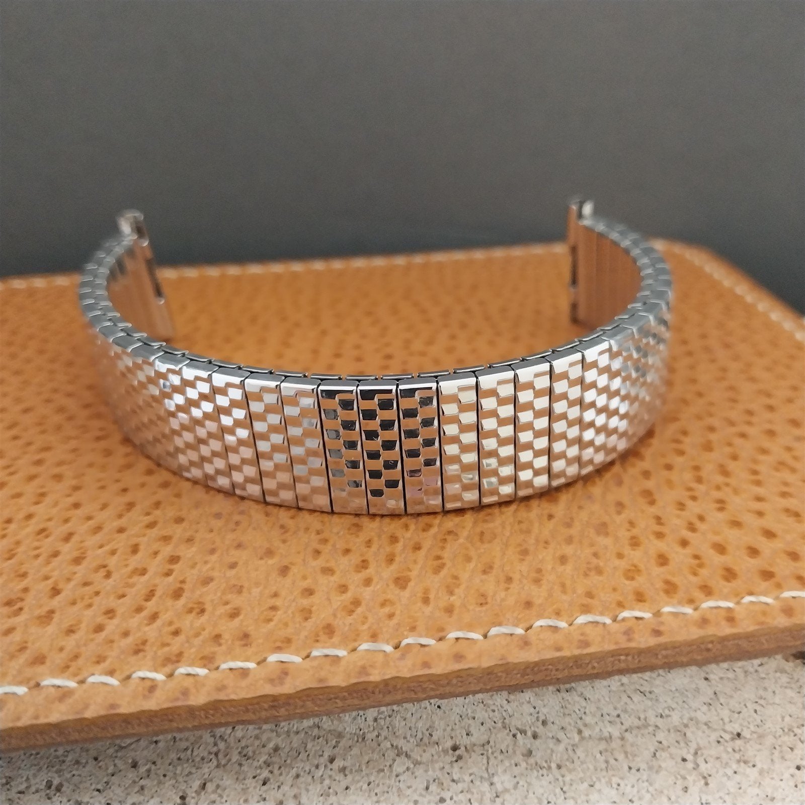 - NOS unused old-stock 1962 Speidel 10k white gold-filled Twist-O-Flex expansion watch bracelet.