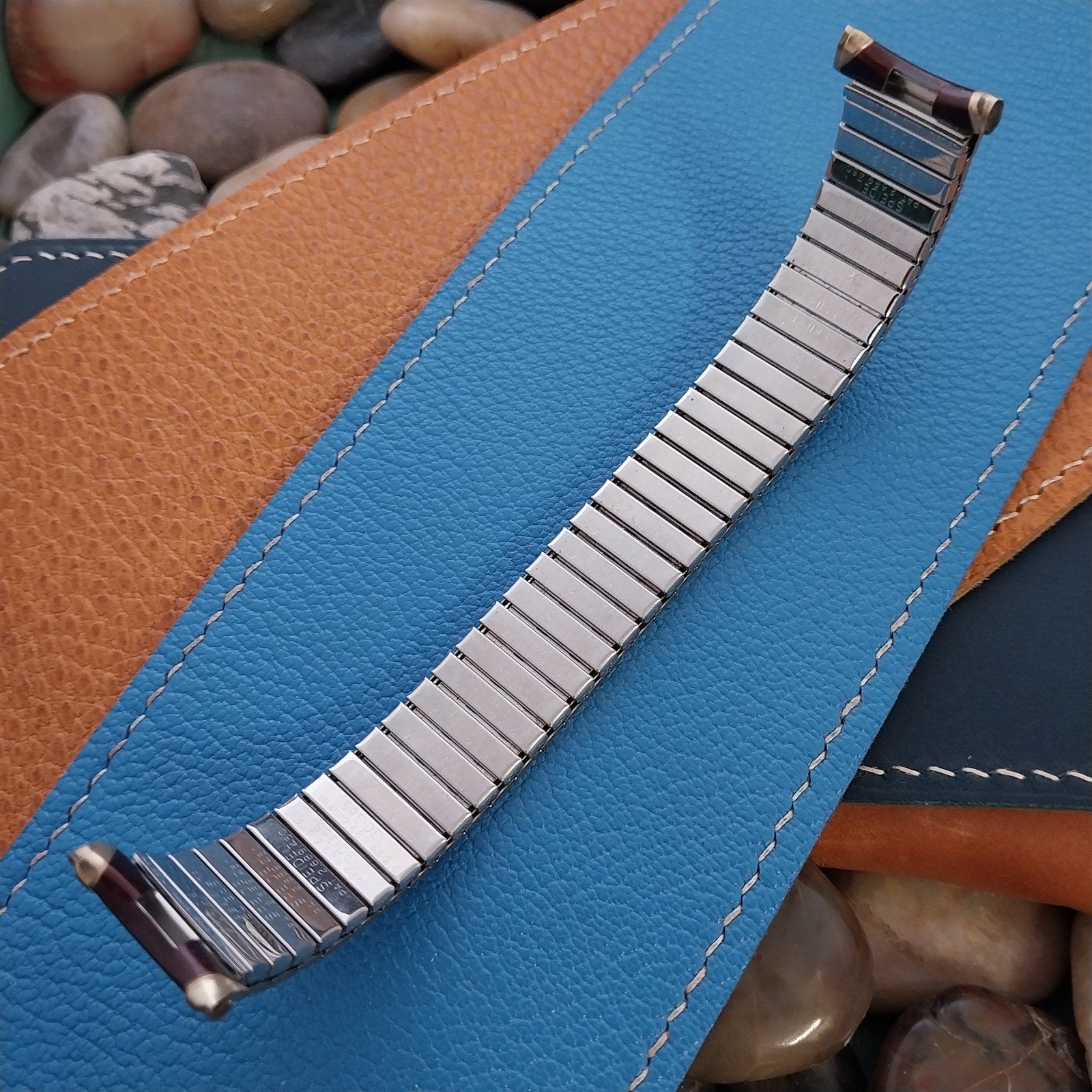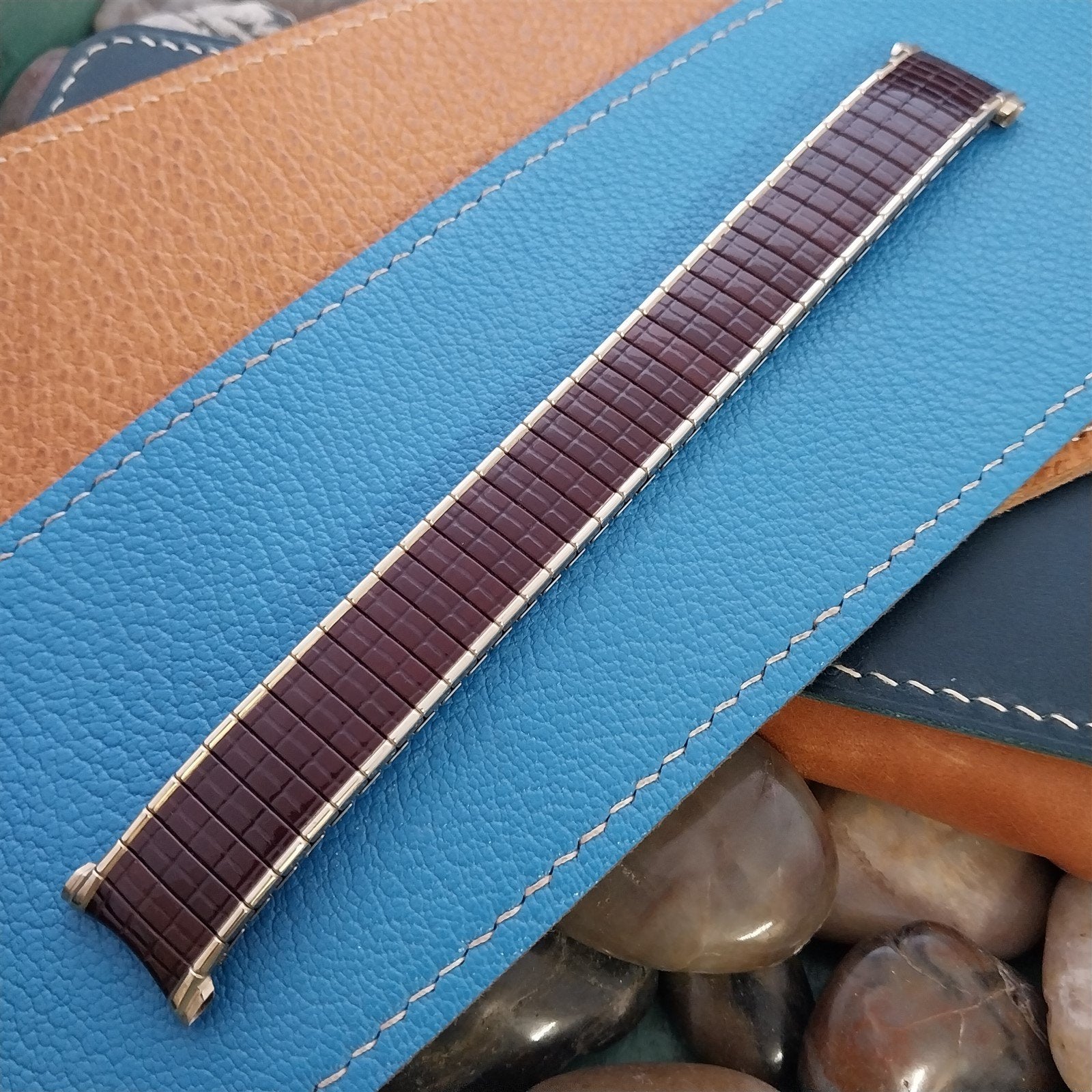 - NOS unused old stock 1967 Speidel Romunda rootbeer brown & 10k yellow gold-filled expansion watch bracelet.