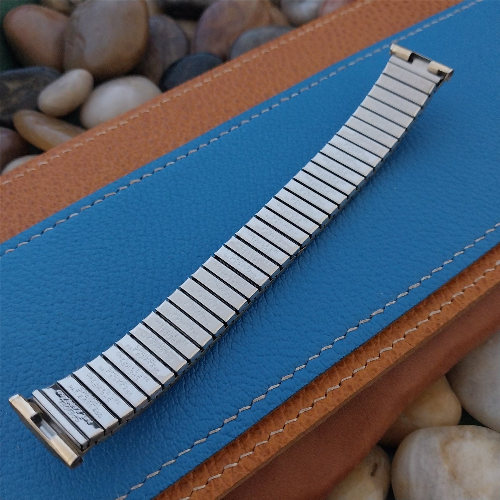 - NOS unused old-stock 1969 Speidel Gladiator Twist-O-Flex 10k yellow gold-filled expansion watch bracelet.
