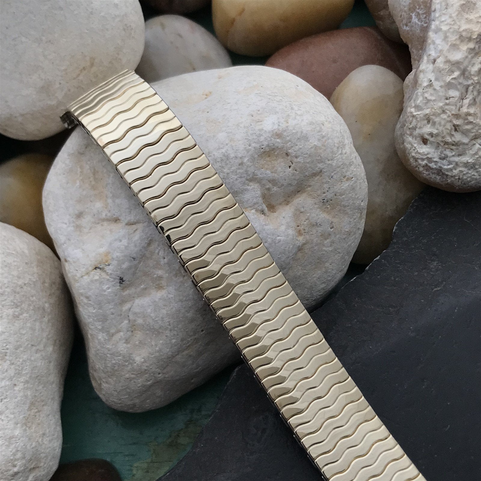 - NOS unused 1969 old-stock Speidel Riptide 10k yellow gold-filled Twist-O-Flex expansion watch bracelet.
