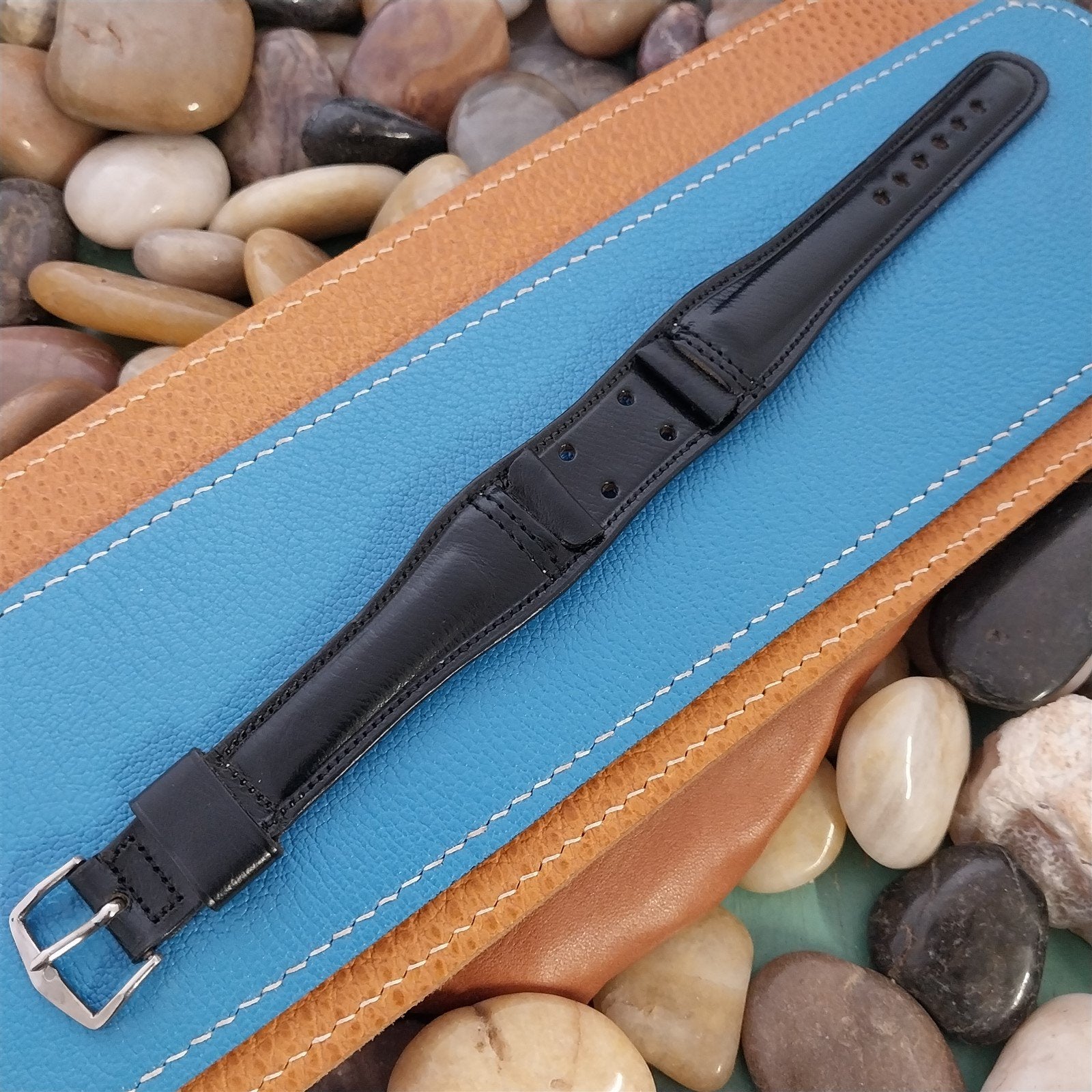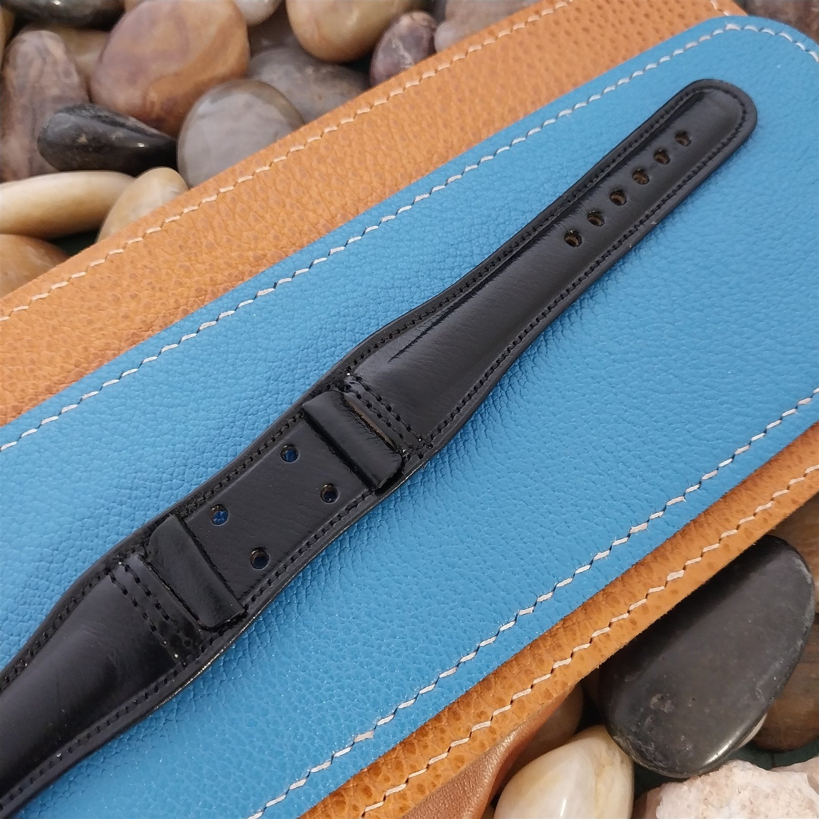1970s Classic Cuff Vintage 17.5mm Black Leather Unused All In One Watch Band
