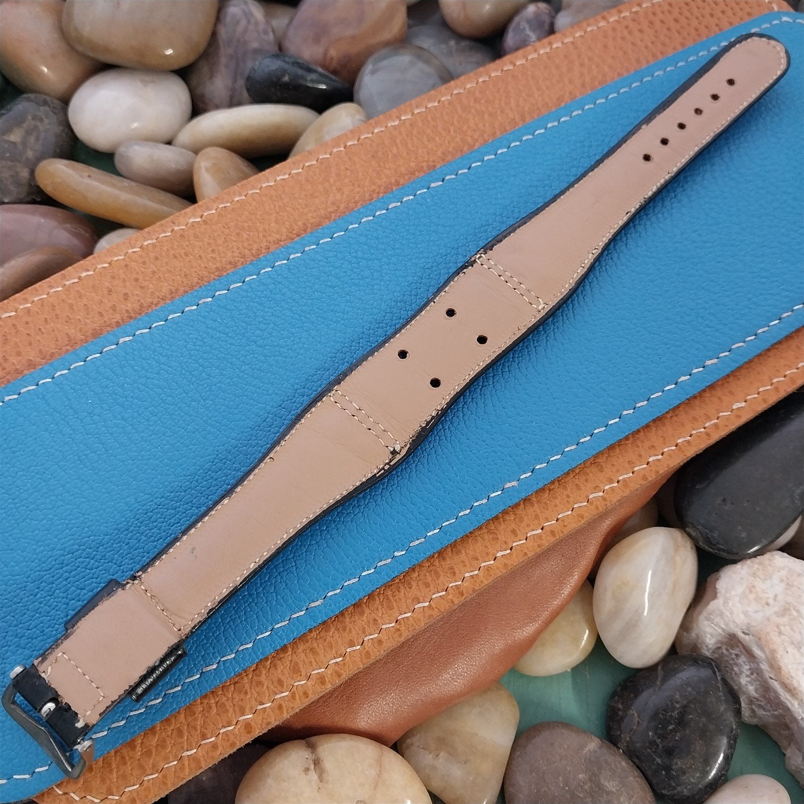 - NOS unused 1960s-1970s unbranded black leather "All In One" watch strap.