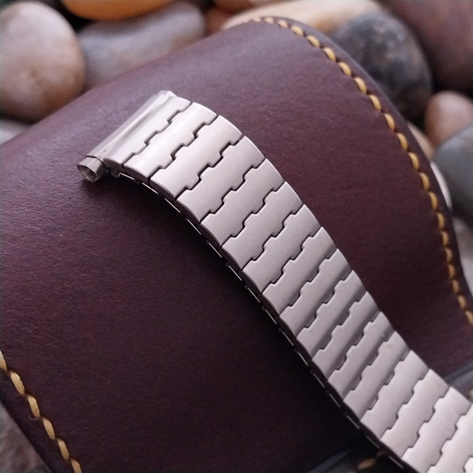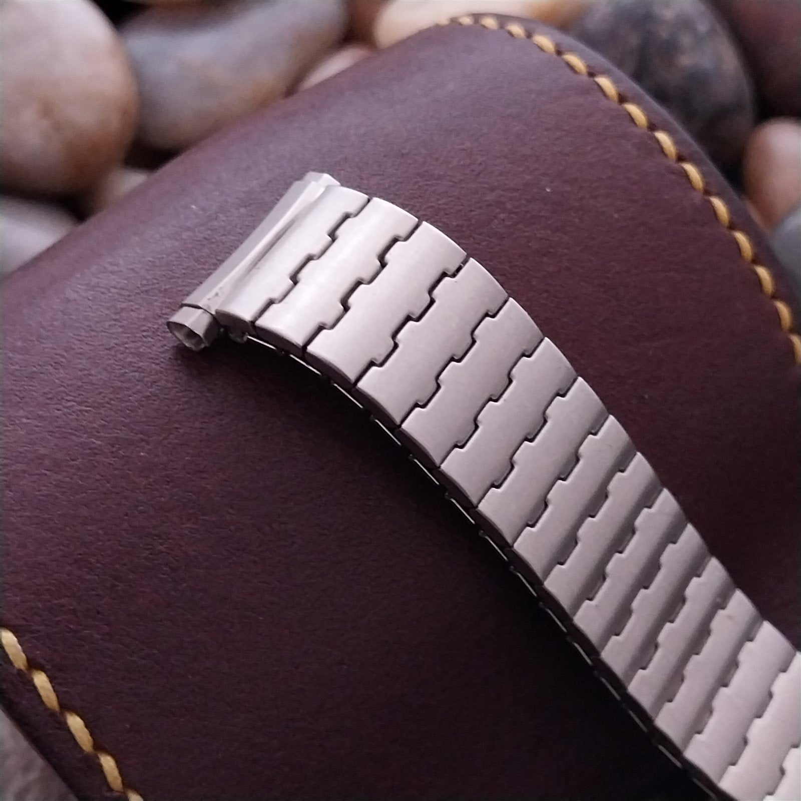 - NOS unused 1970s old-stock Speidel brushed stainless steel expansion watch bracelet.