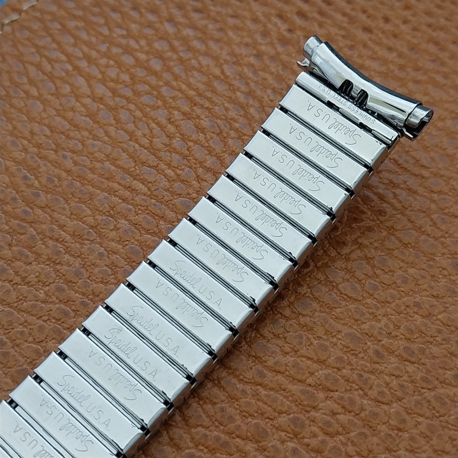- NOS unused 1970s old-stock Speidel Aquarius stainless steel expansion watch bracelet.