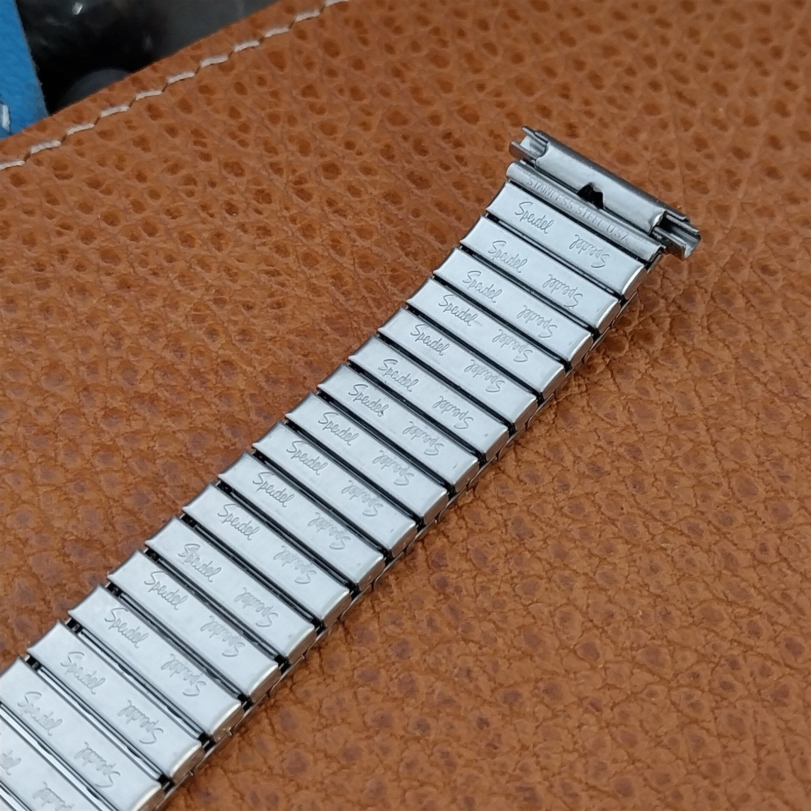 - NOS unused 1970s old-stock Speidel Atlantis stainless steel expansion watch bracelet.