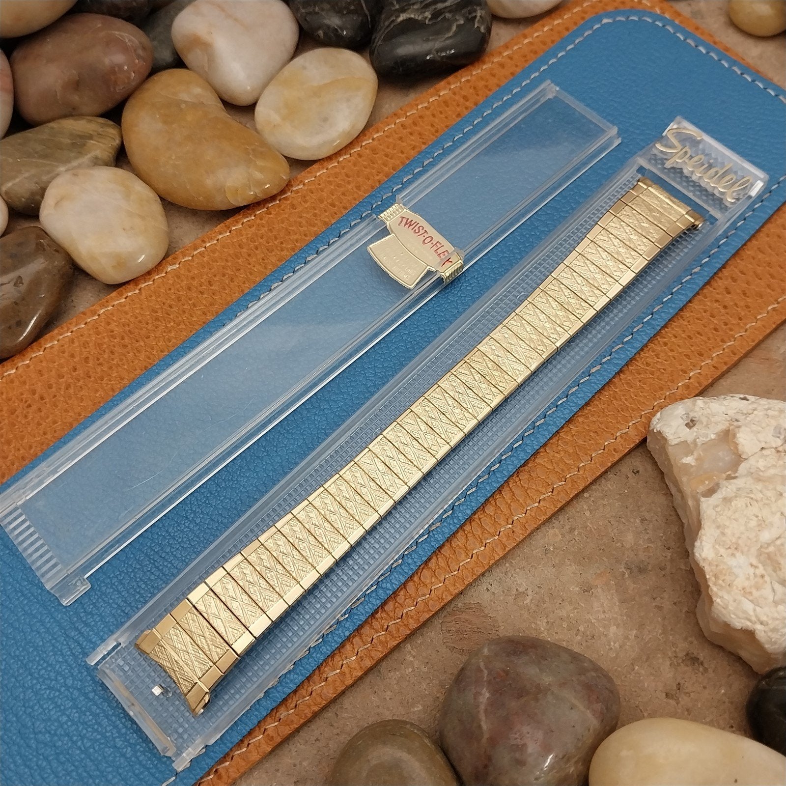 - NOS unused 1970s old-stock Speidel Tapered 10k yellow gold expansion watch band.