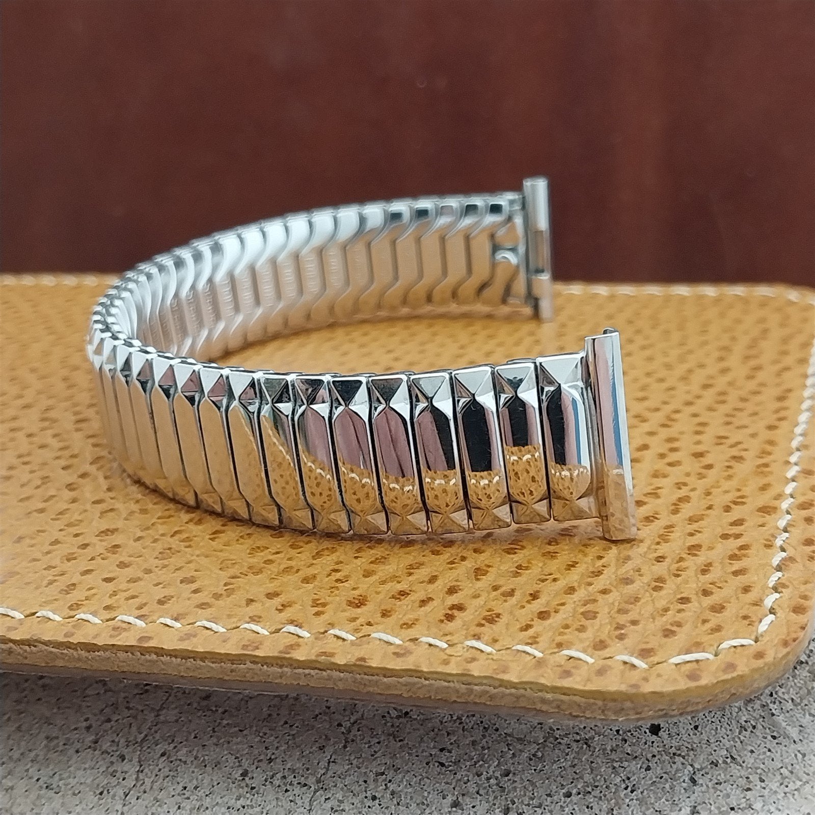 - NOS unused old-stock 1954 Speidel First Nighter 1/20 10k white gold-filled scissor expansion watch band.
