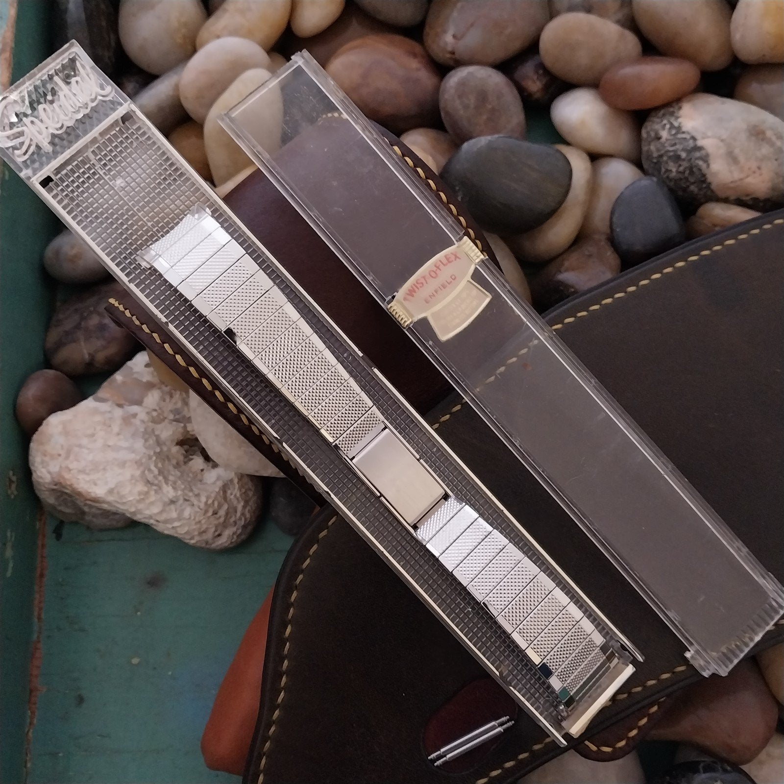 - NOS unused old-stock 1971 Speidel Enfield 10k white gold-filled expansion watch band.