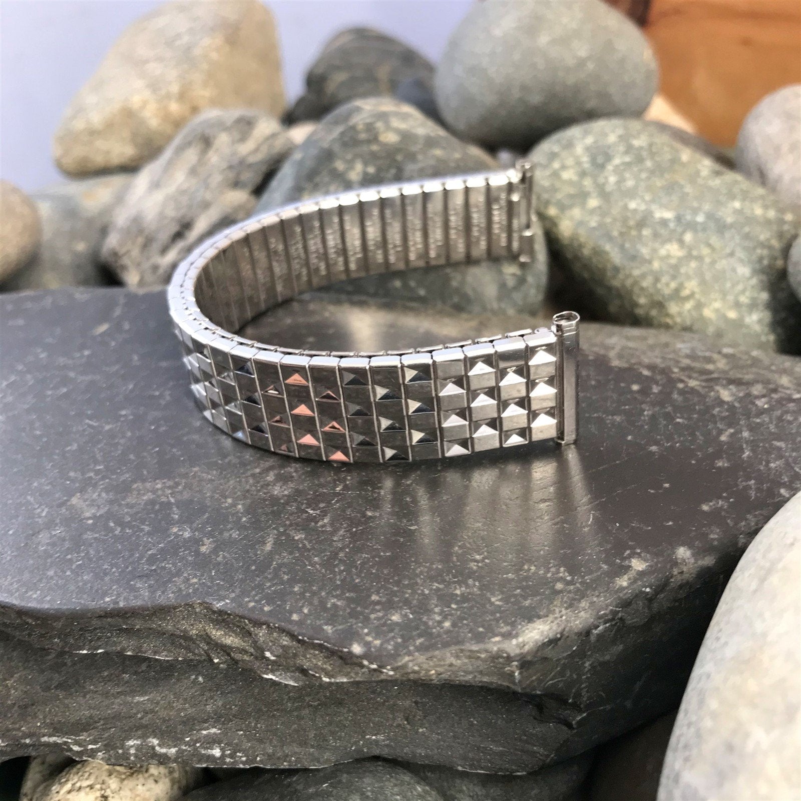 - NOS unused 1950s old-stock Speidel 1/20 10k white gold-filled twist-o-flex expansion watch band.