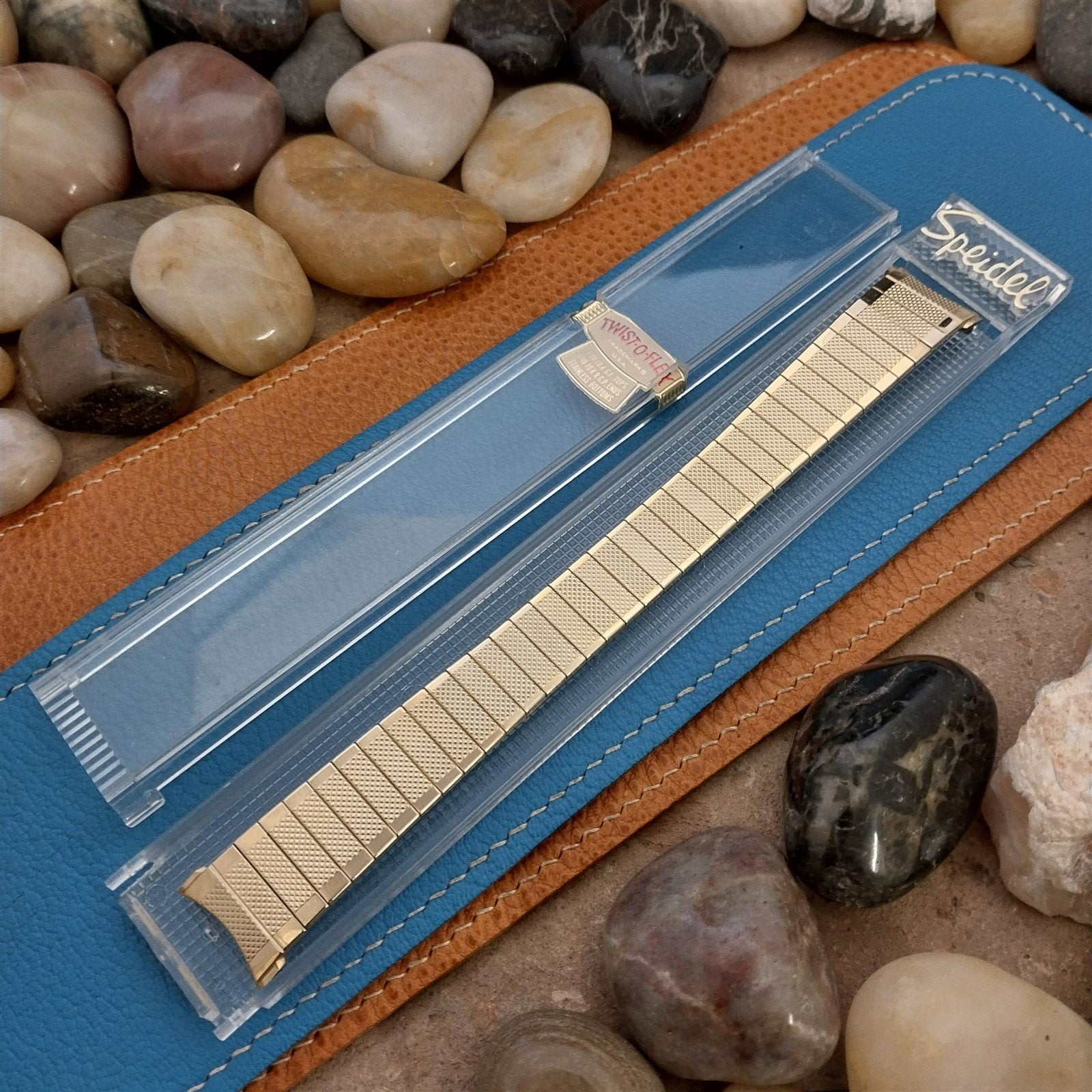 - NOS unused 1970s old-stock Speidel Tapered 10k yellow gold expansion watch band.
