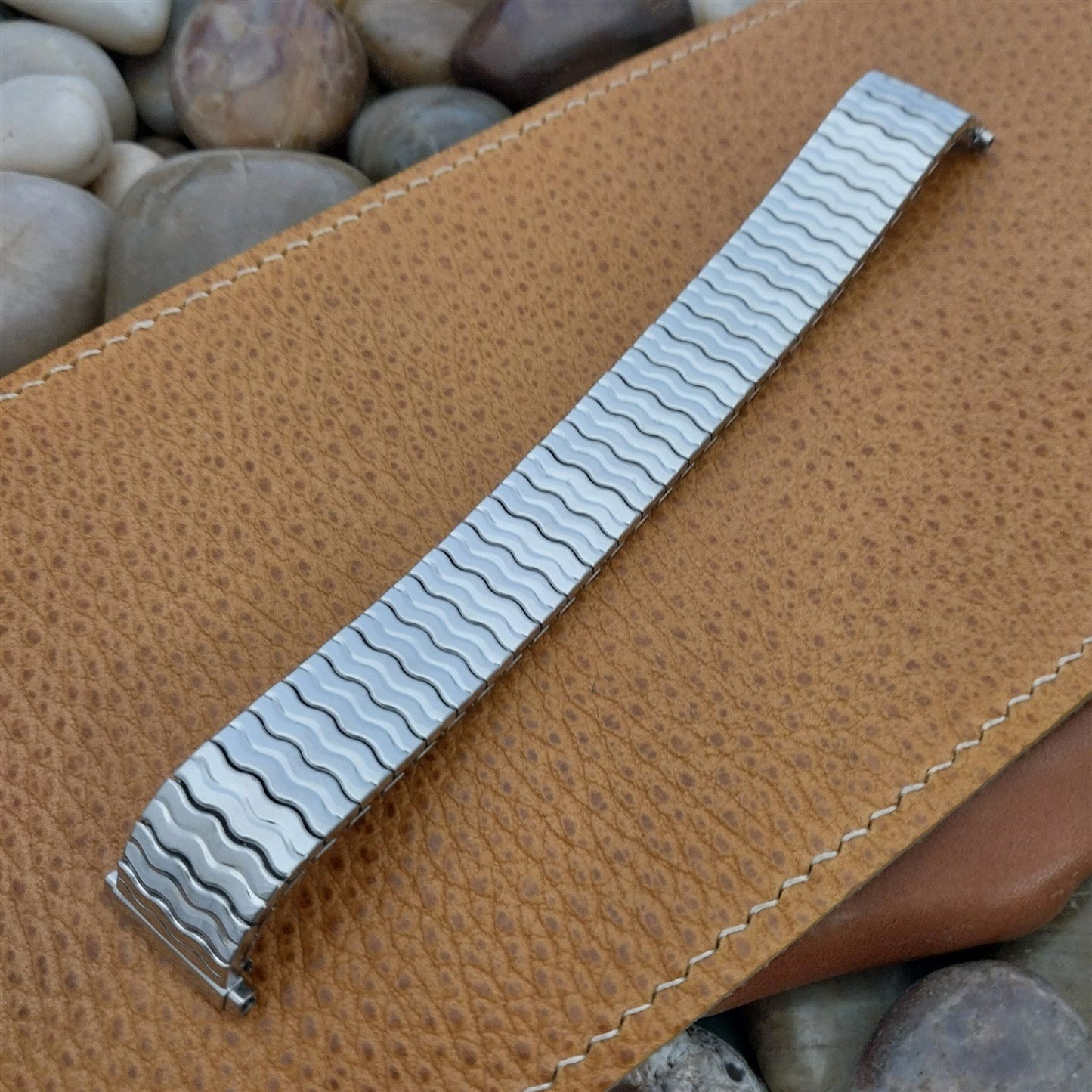 - NOS unused 1970s old-stock Speidel Riptide stainless steel Twist-O-Flex expansion watch bracelet.