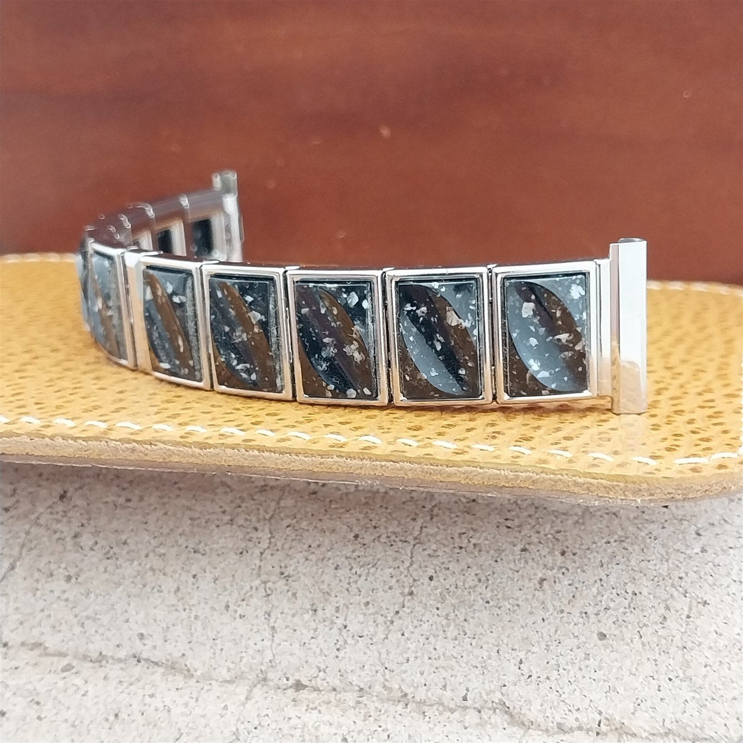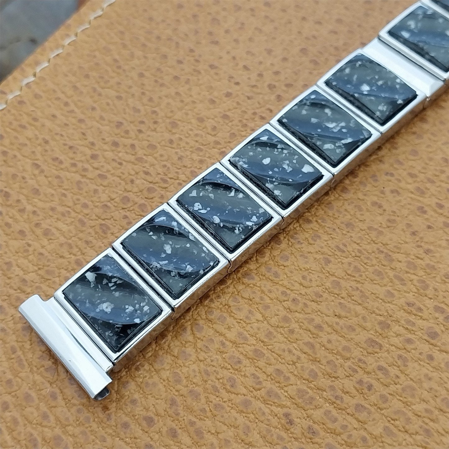 - NOS unused 1950s old-stock Gemex Monte Carlo stainless steel expansion watch bracelet with faux stone inserts.