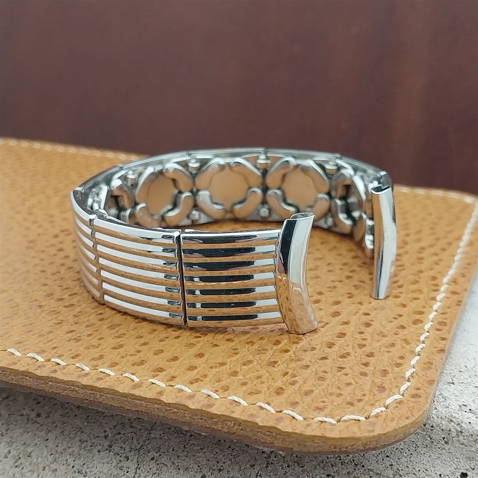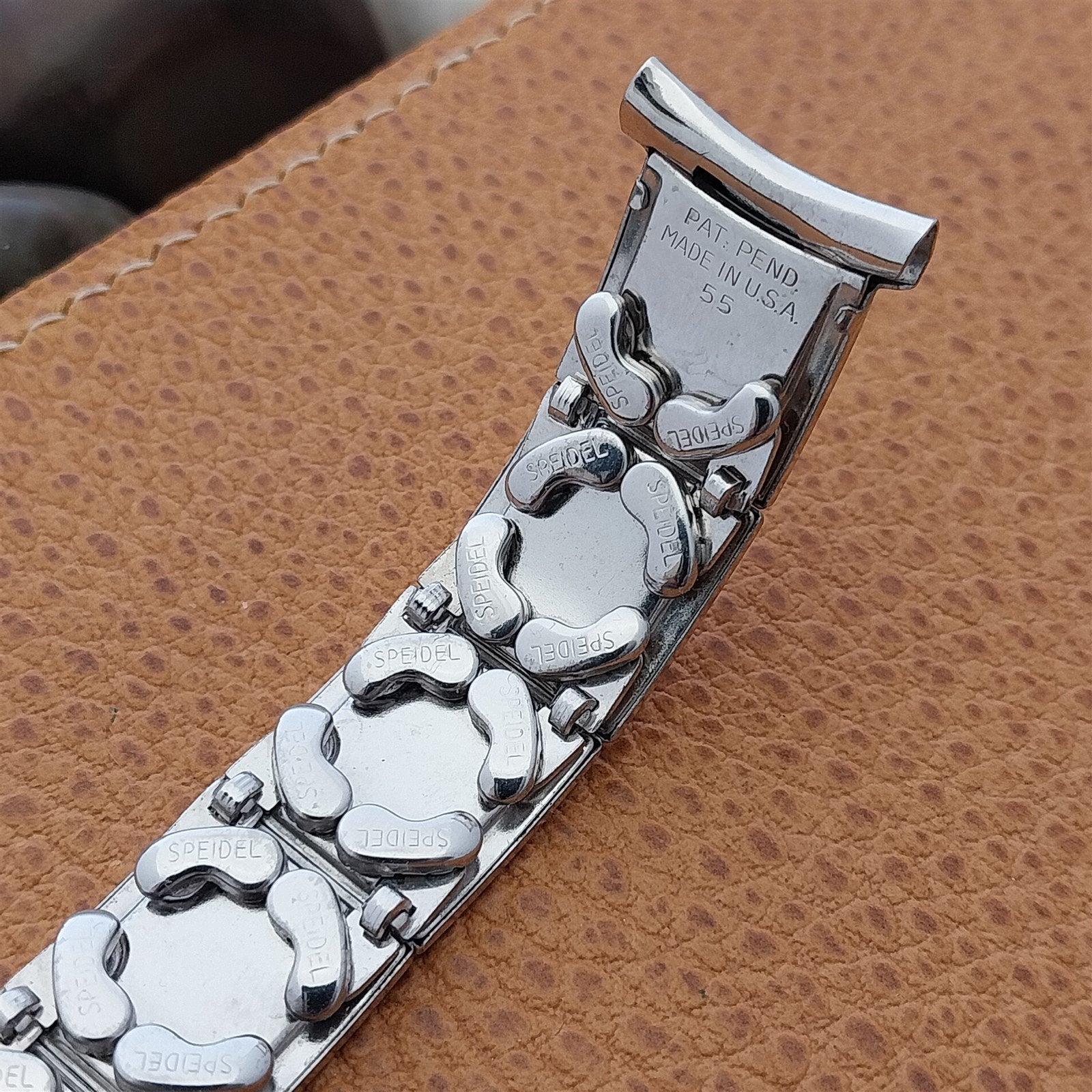 - NOS unused old-stock 1955 Speidel In The Groove Floating Link 10k white gold-filled expansion watch bracelet.