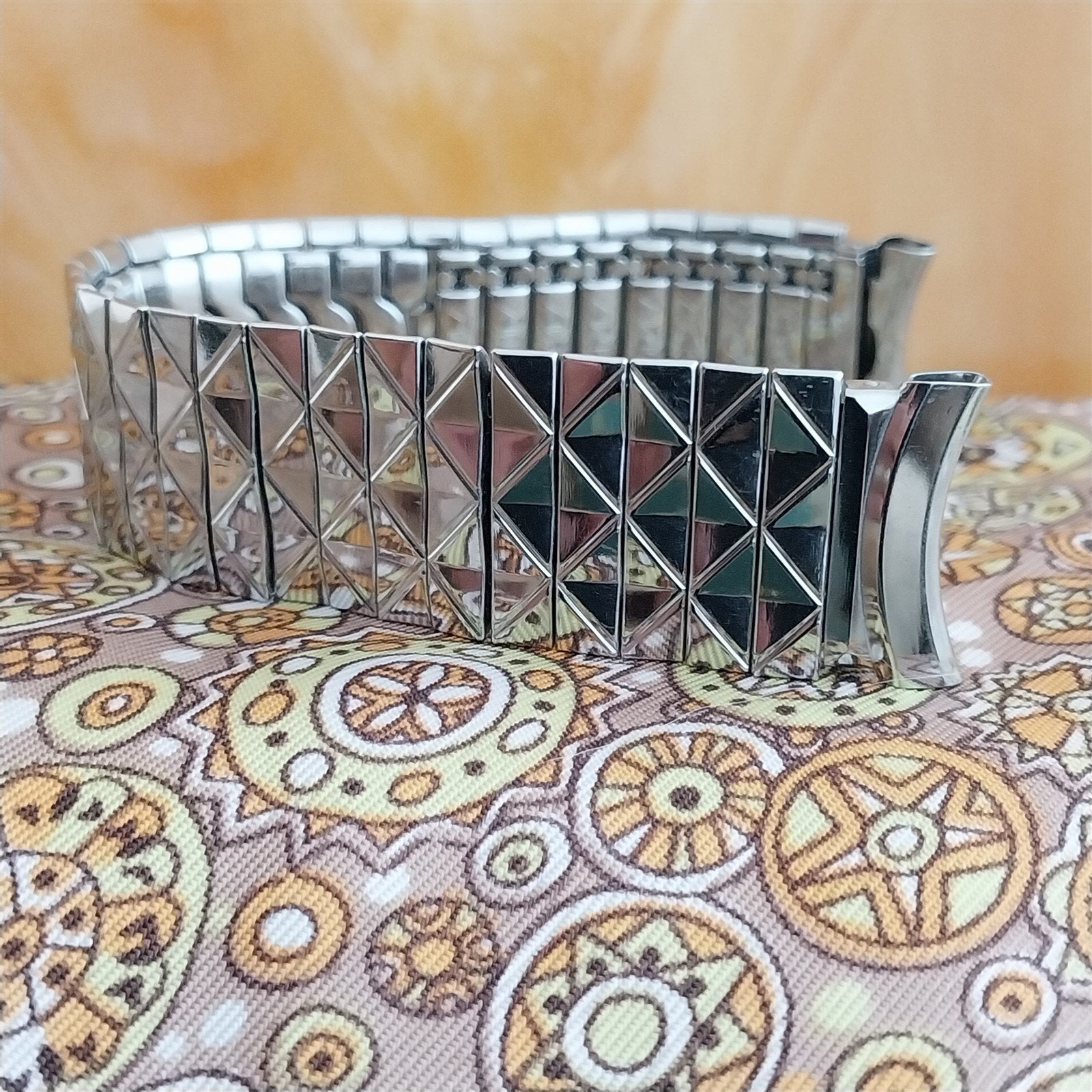 - NOS unused 1950s old-stock Gemex Troubador stainless steel center scissor-expansion watch bracelet.
