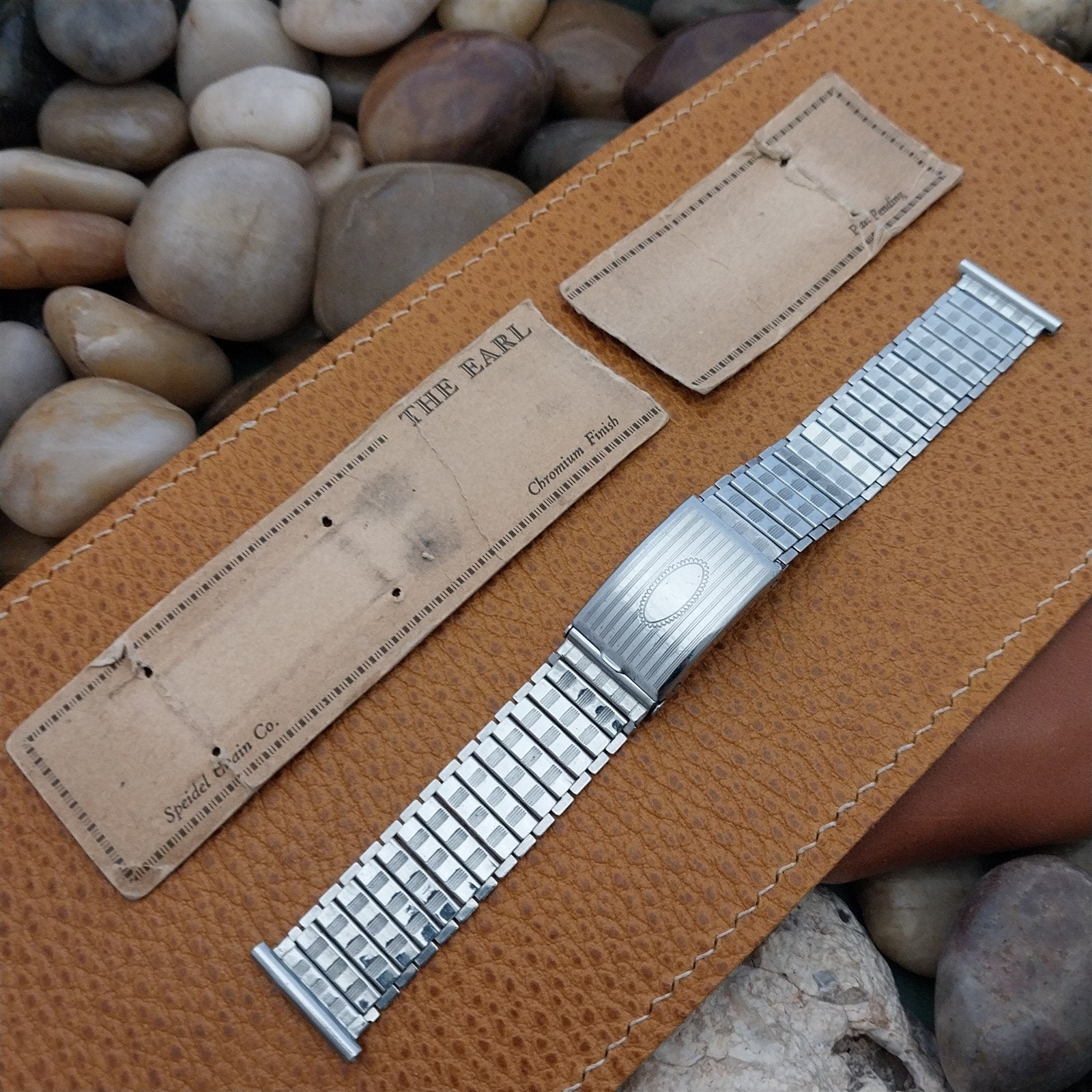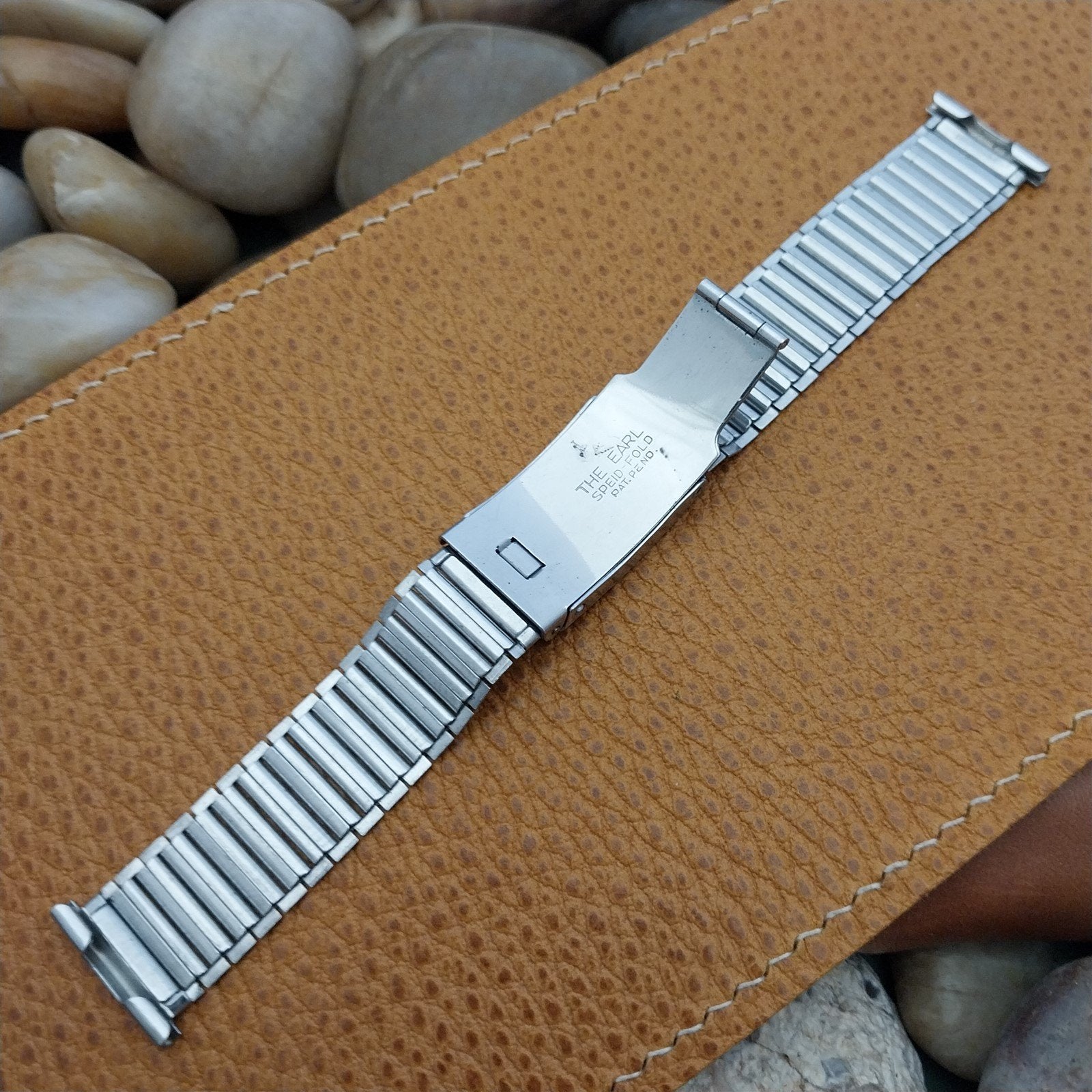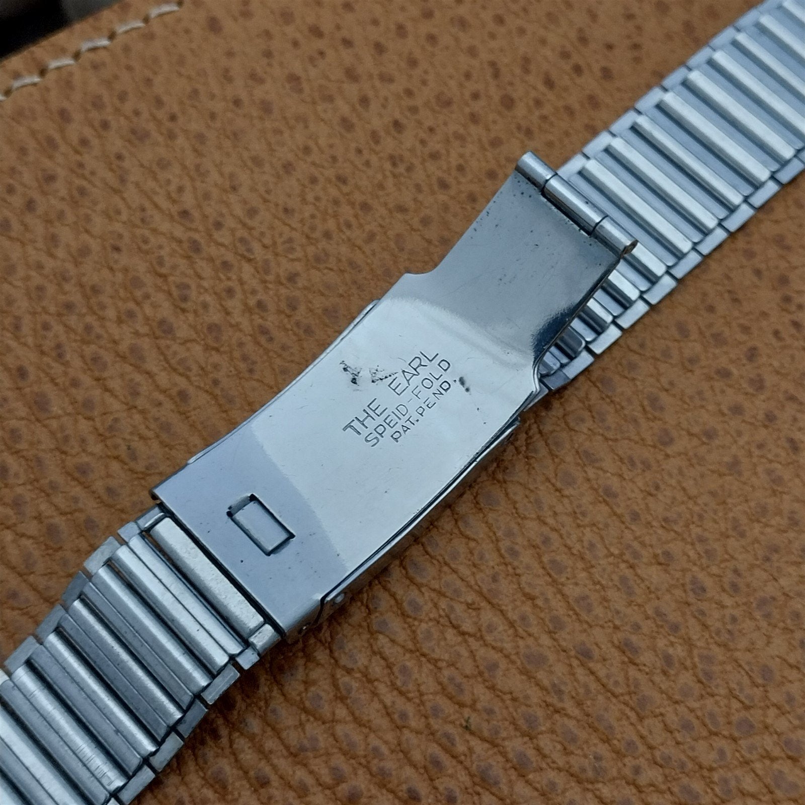 - NOS 1930s old-stock The Earl chromium plated watch bracelet with fold-over buckle.