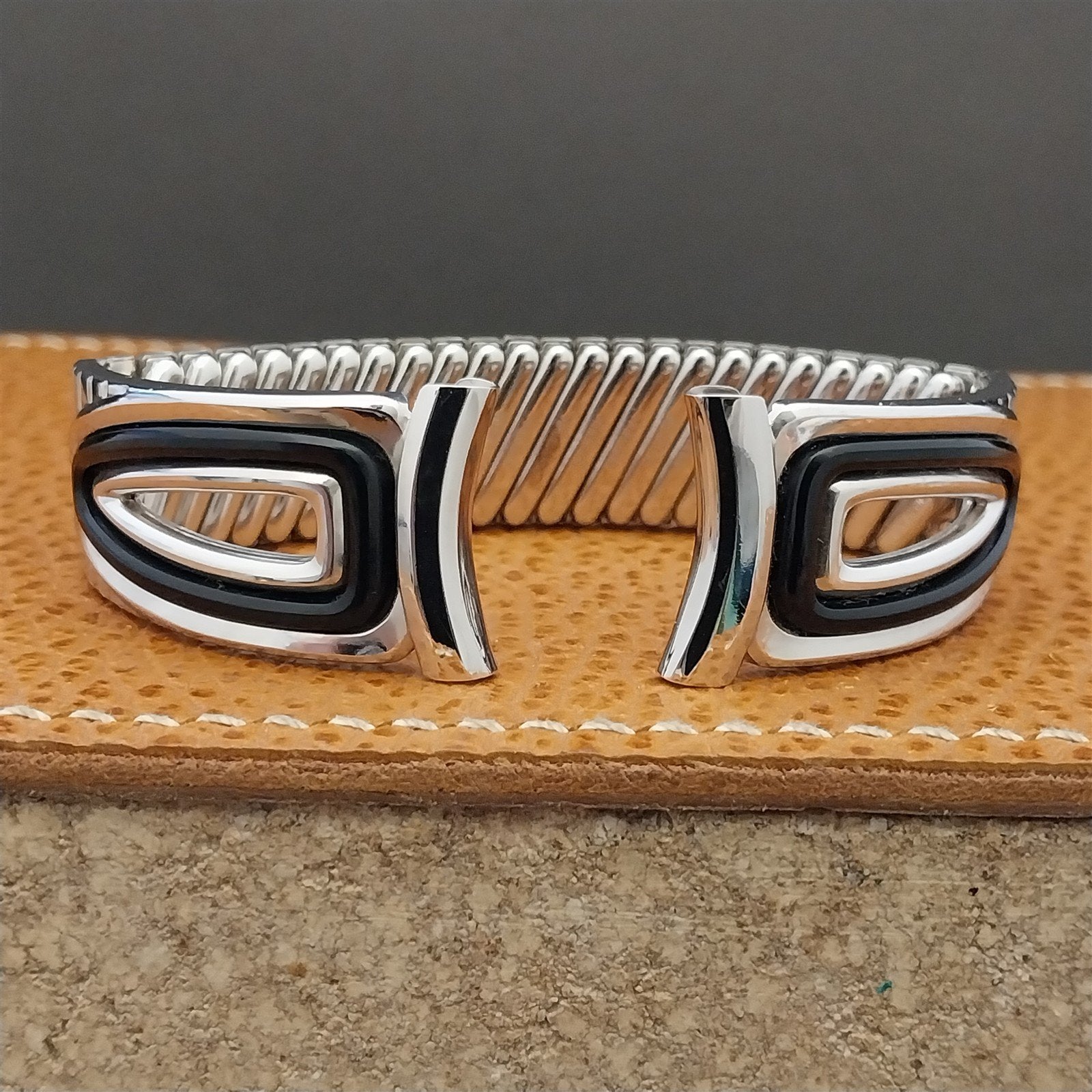 - NOS unused 1950a old-stock Speidel American Jet 10k white gold-filled center scissor-expansion watch bracelet.