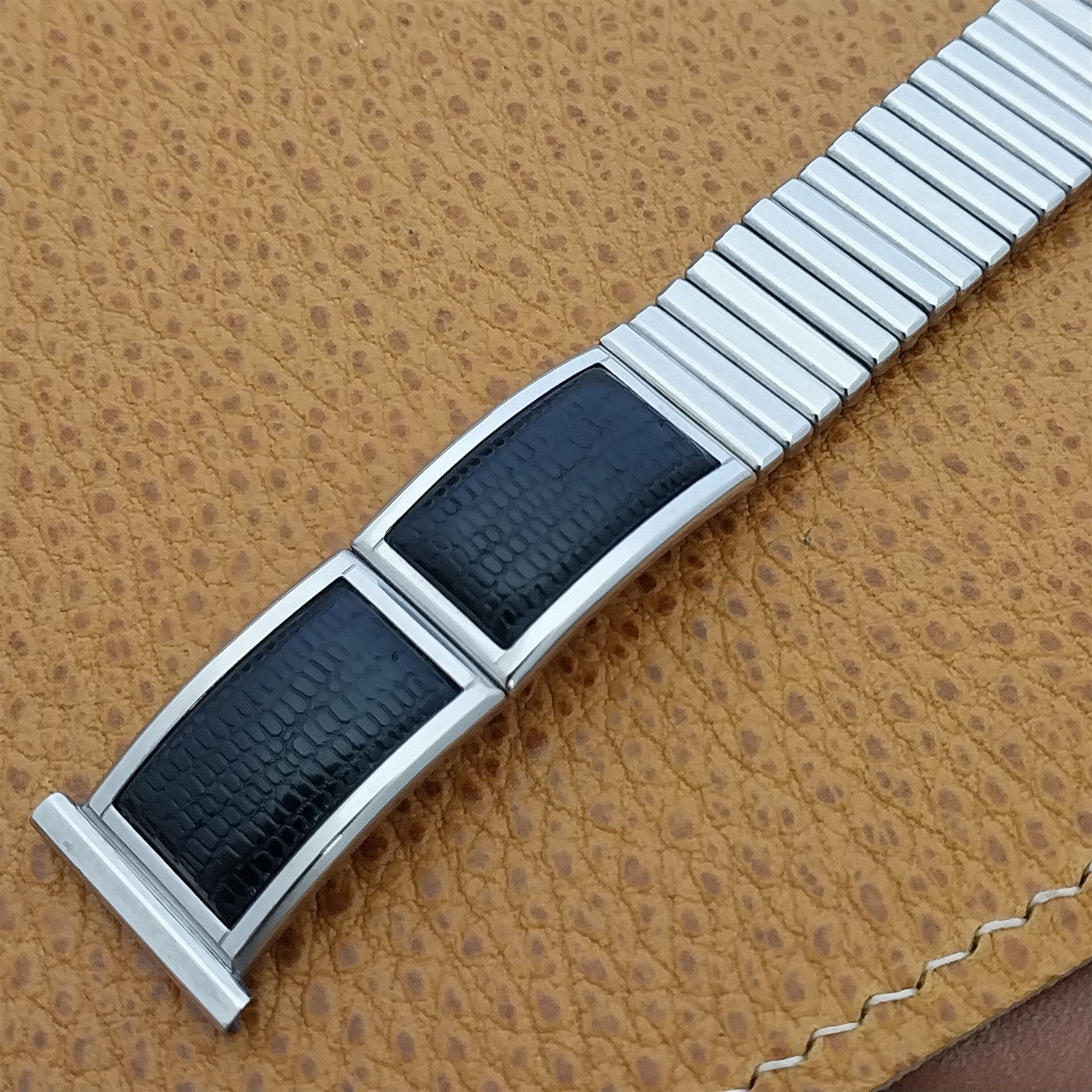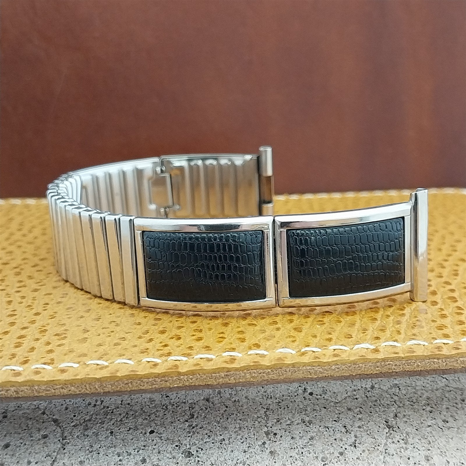 - NOS unused 1957 old stock Speidel Maraca 10kt white gold-filled & black plastic center-expansion watch bracelet.