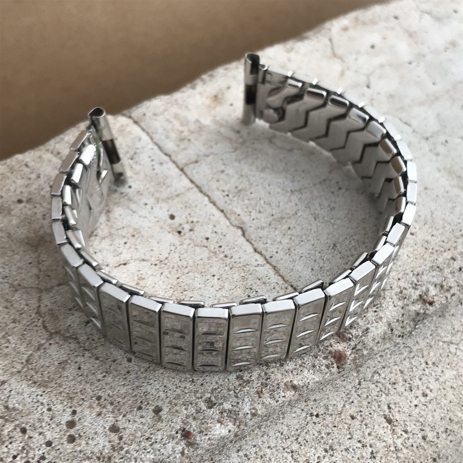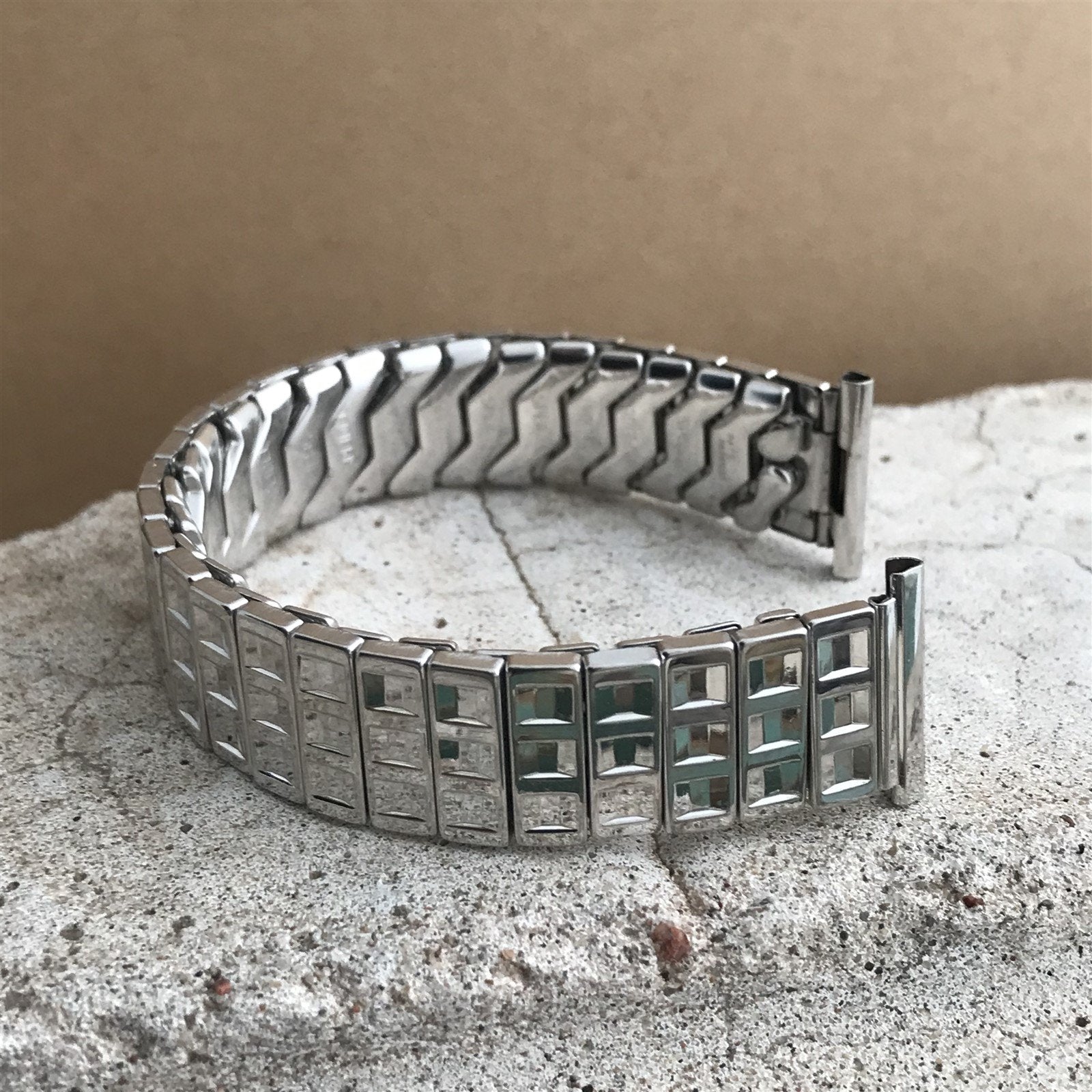 - NOS unused 1958 old-stock Speidel 1/20 10k white gold-filled scissor-expansion watch bracelet.