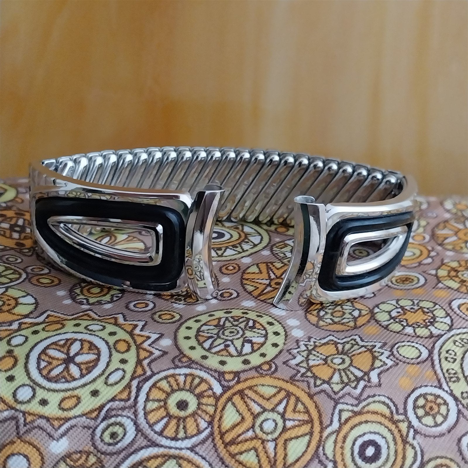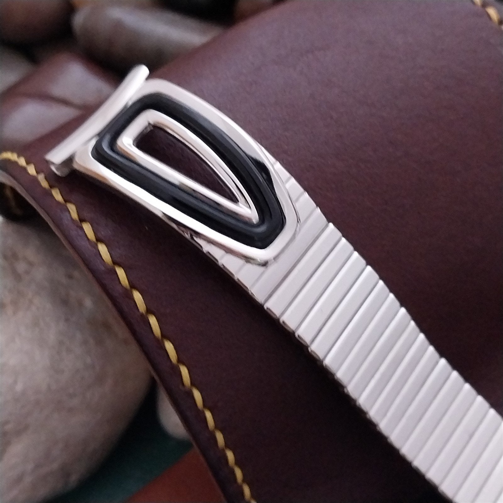 - NOS unused 1958 old-stock Speidel American Jet 10k white gold-filled center scissor-expansion watch bracelet.