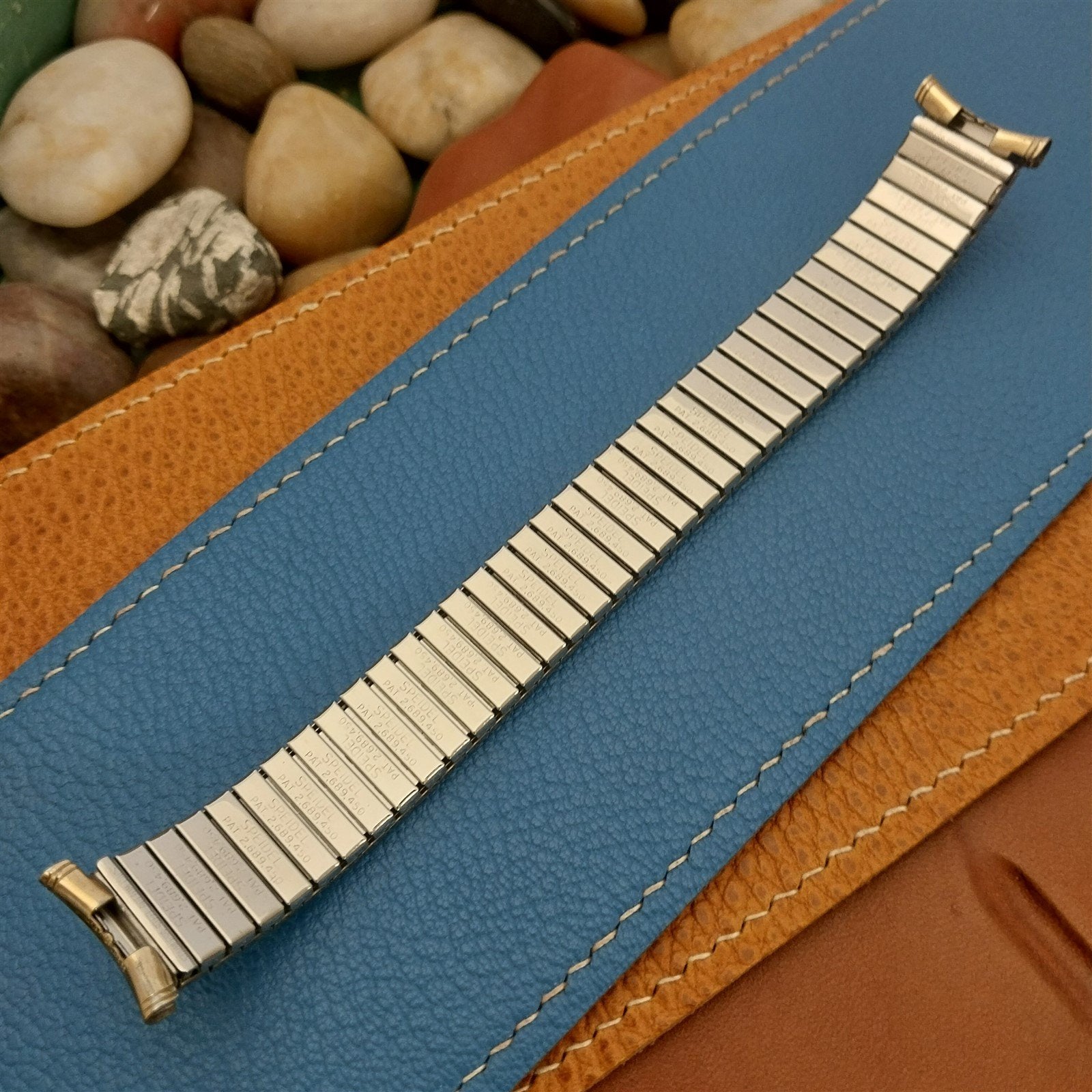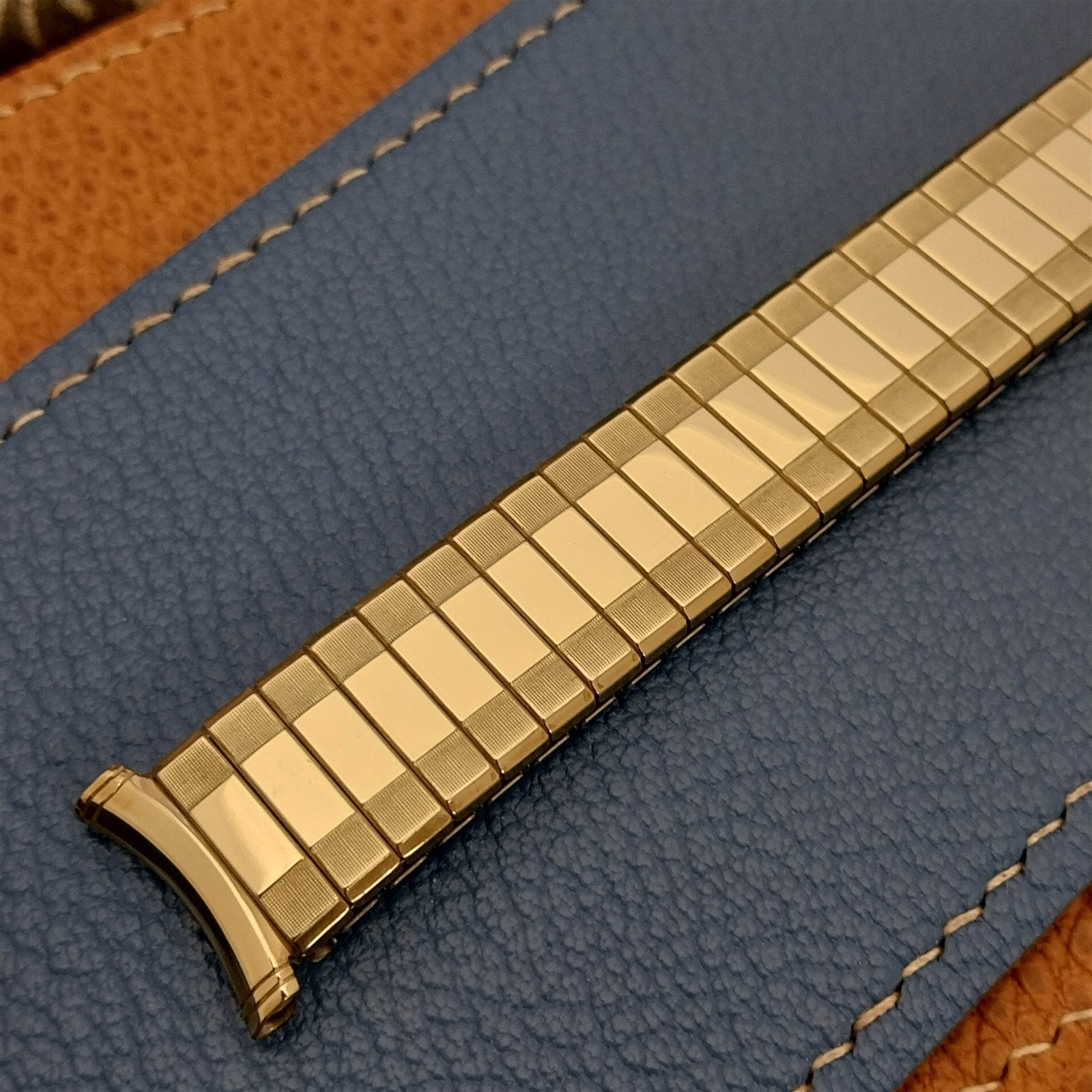 - NOS unused old-stock 1966 Speidel Sun Valley 10k yellow gold-filled Twist-O-Flex expansion watch bracelet.