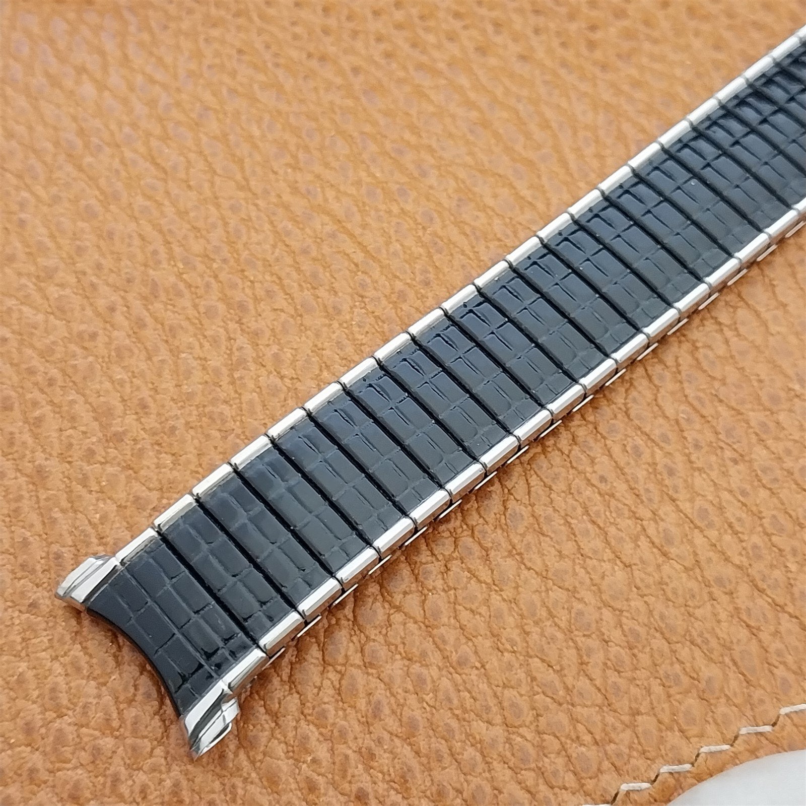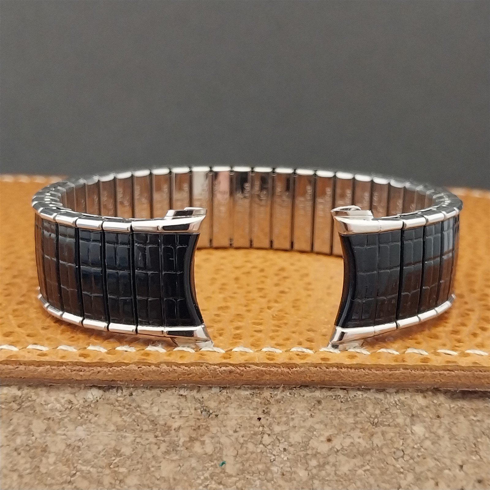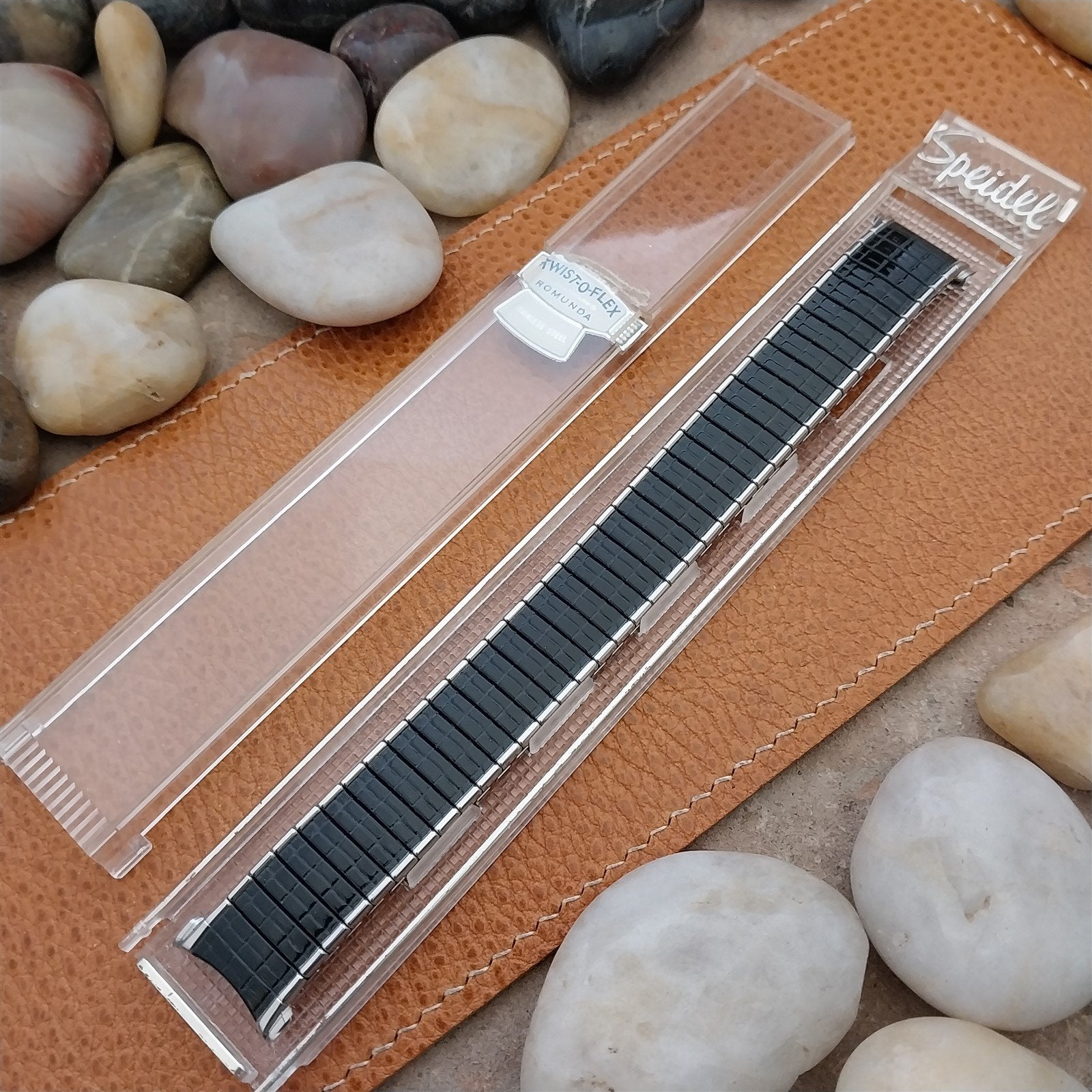 - NOS unused 1970 Speidel black and stainless steel Romunda expansion watch bracelet.