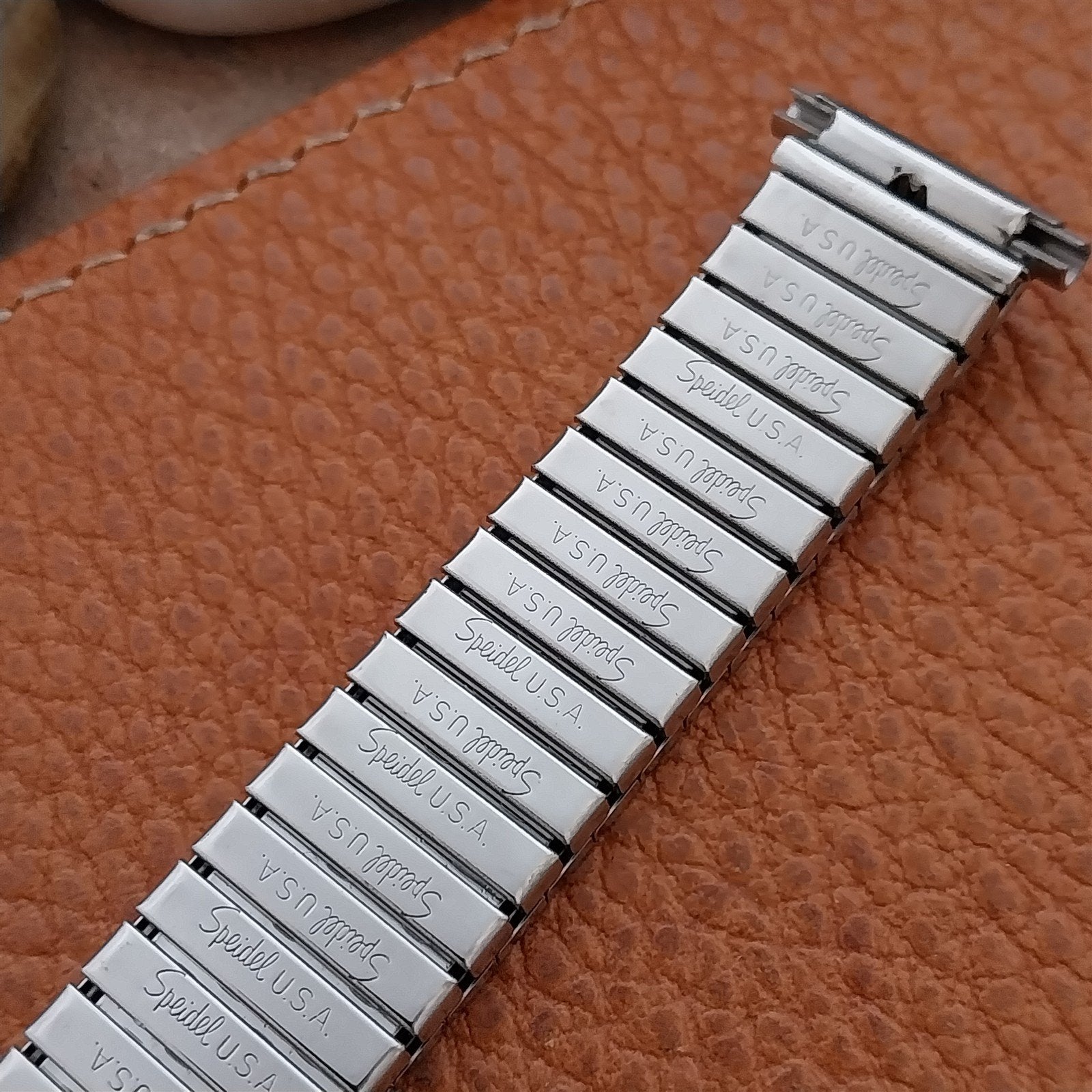 - NOS unused 1970s old-stock Speidel Valencia all stainless Twist-o-flex expansion watch band.