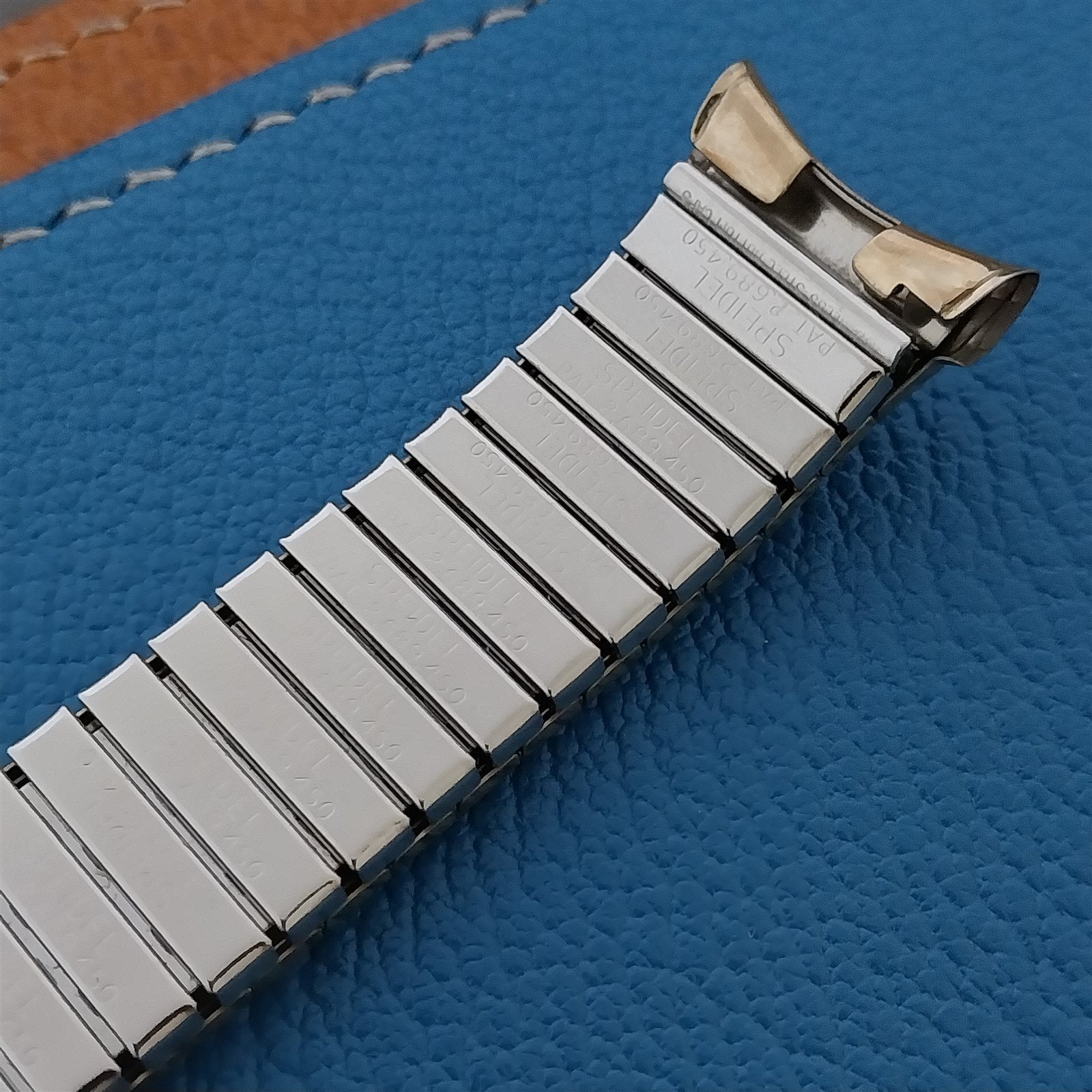 - NOS unused old-stock 1960s Speidel Spartacus 10k matte yellow gold-filled expansion watch band.