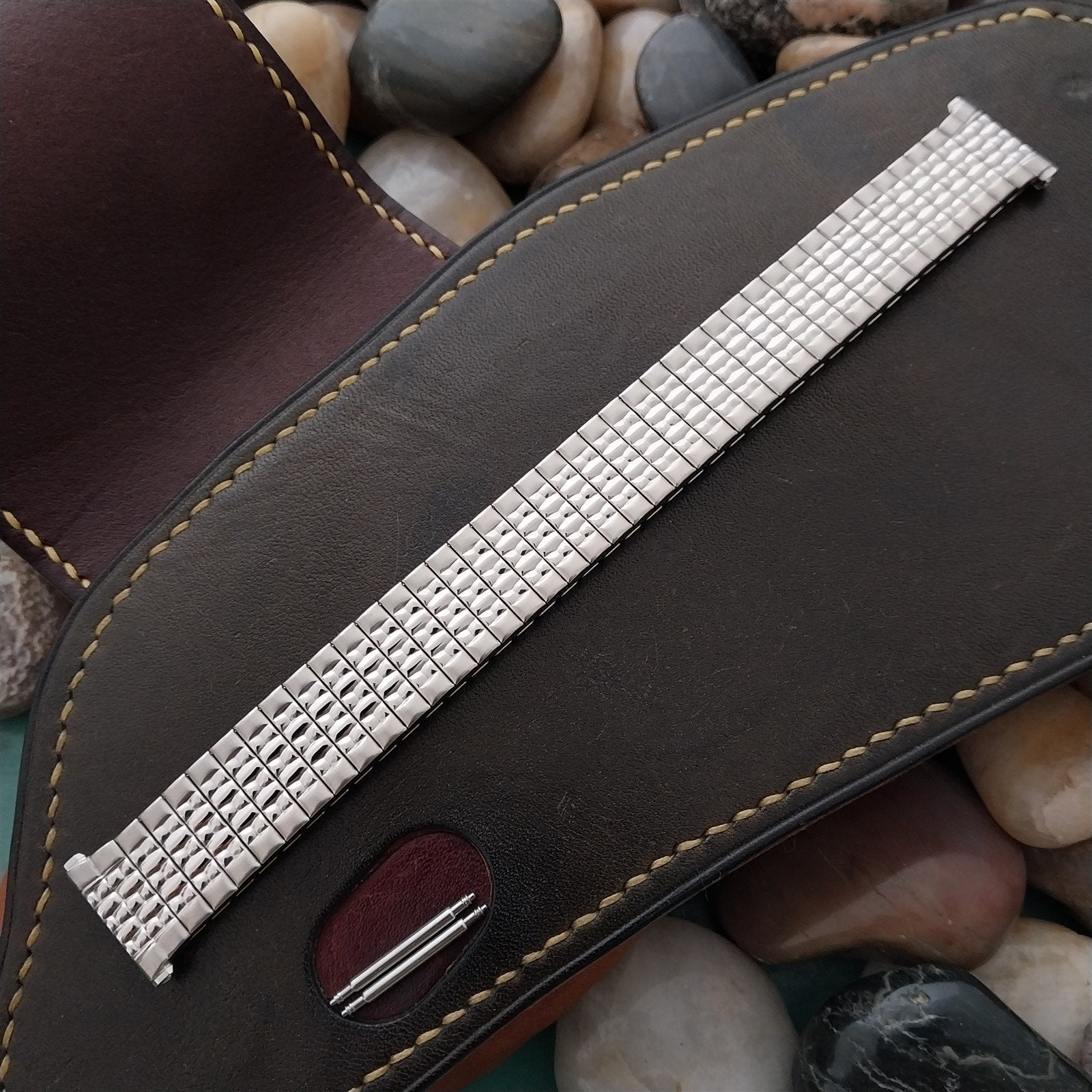 19mm 18mm Stainless Rice Beads Speidel Tempest Unused 1966 Vintage Watch Band