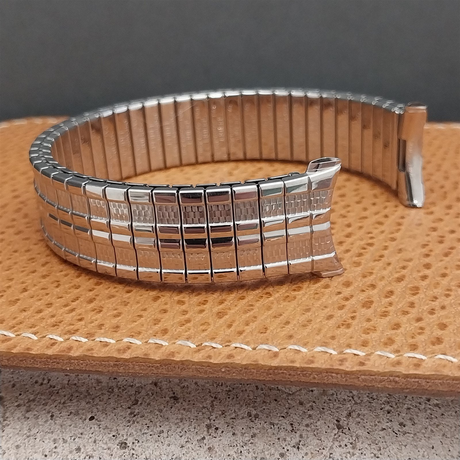 - NOS unused 1963 old-stock Speidel Meteor stainless steel expansion watch bracelet.