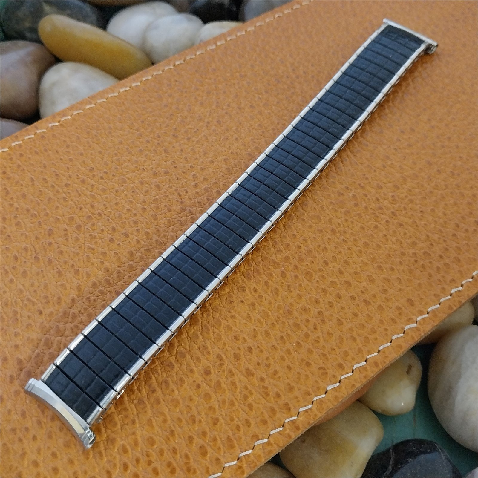 - NOS unused 1960s old-stock Speidel black & stainless steel Romunda Twistoflex expansion watch bracelet.