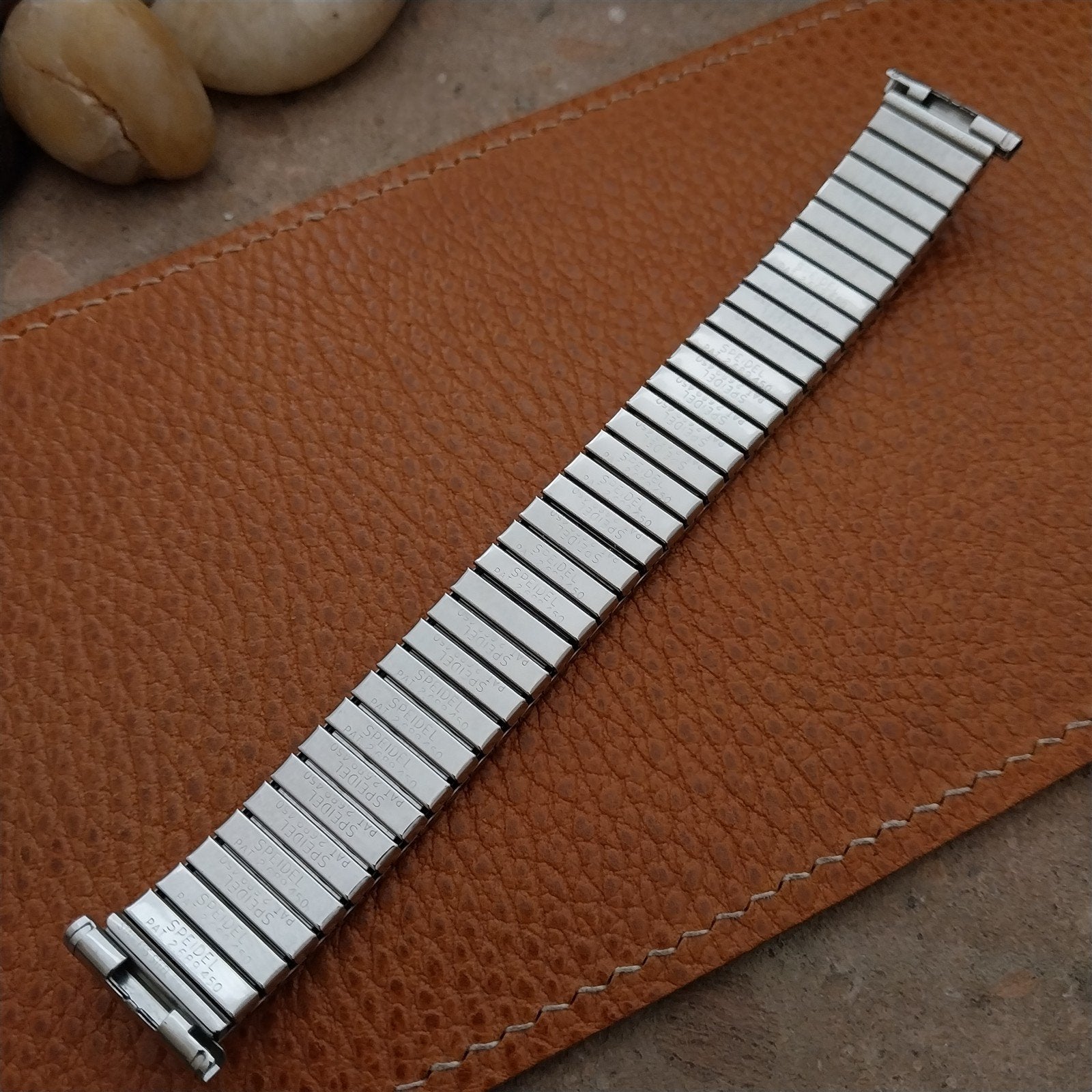 - NOS unused old-stock 1960s Speidel Tempest stainless steel beads of rice Twist-O-Flex expansion watch bracelet.