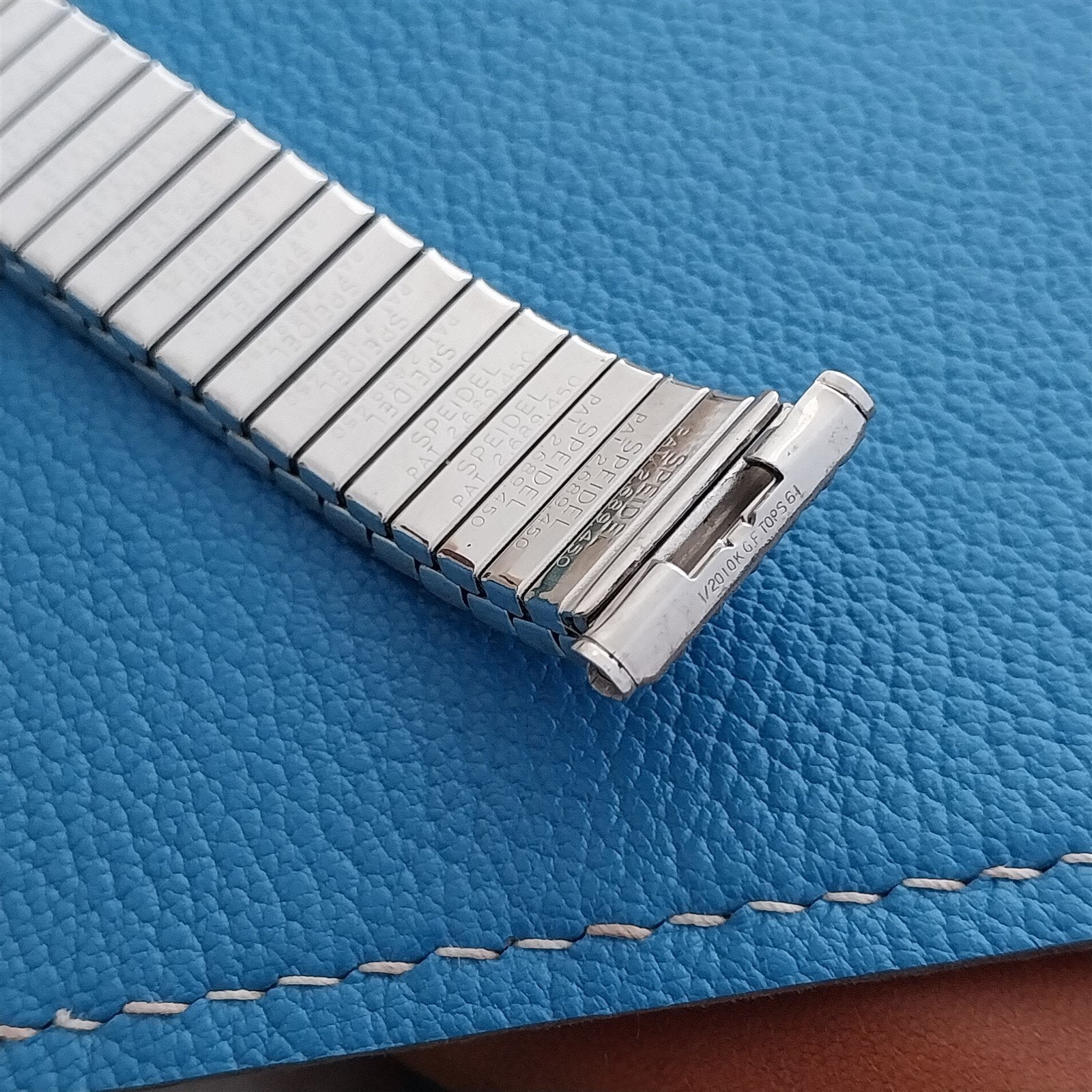 - NOS unused old-stock 1961 Speidel 1/20 10k matte white gold-filled expansion watch bracelet.