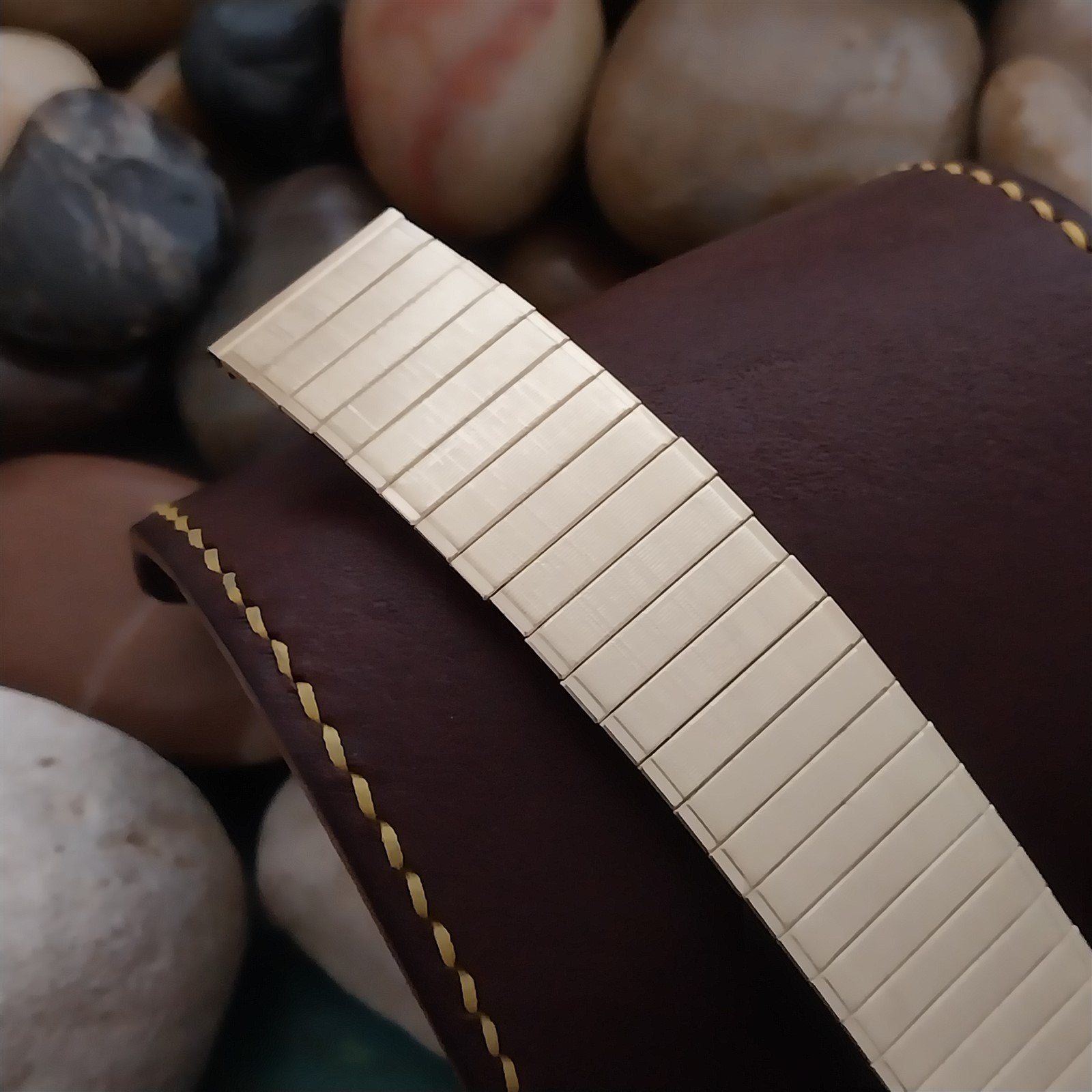 - NOS unused 1970s old-stock Speidel yellow gold-tone expansion watch bracelet.