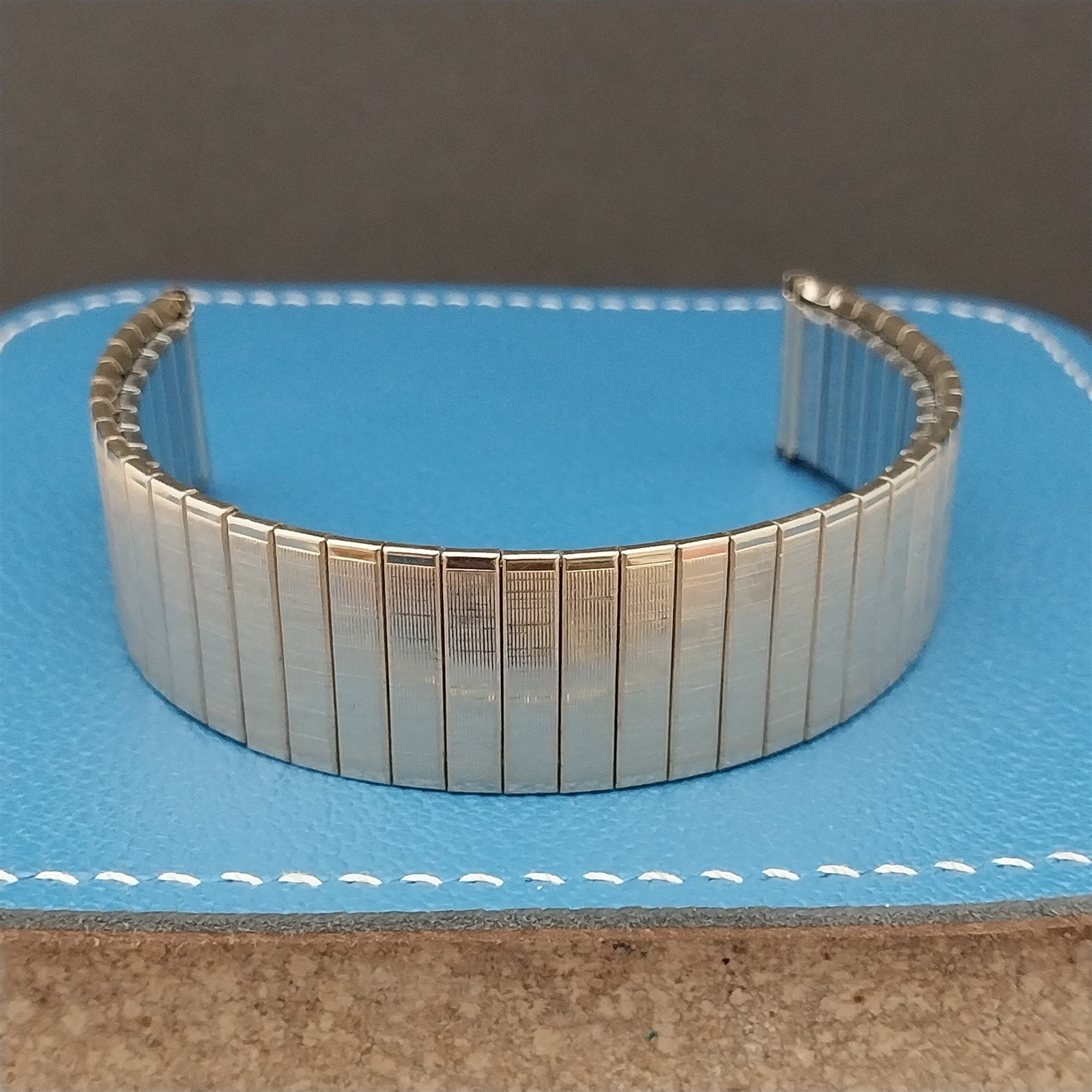 - NOS unused 1970s-1980s old-stock Speidel yellow rolled gold-plate wide Twist-O-Flex expansion watch bracelet.
