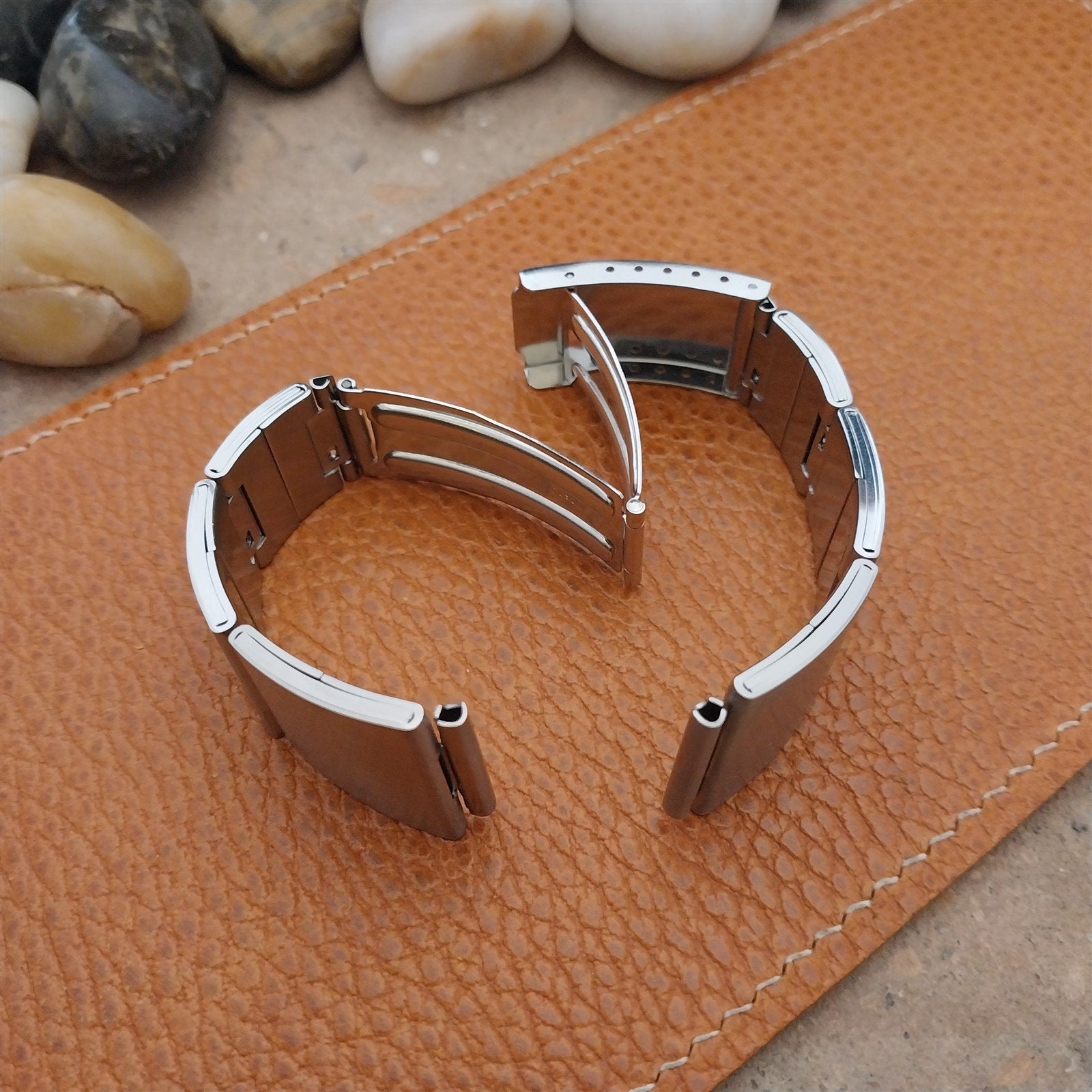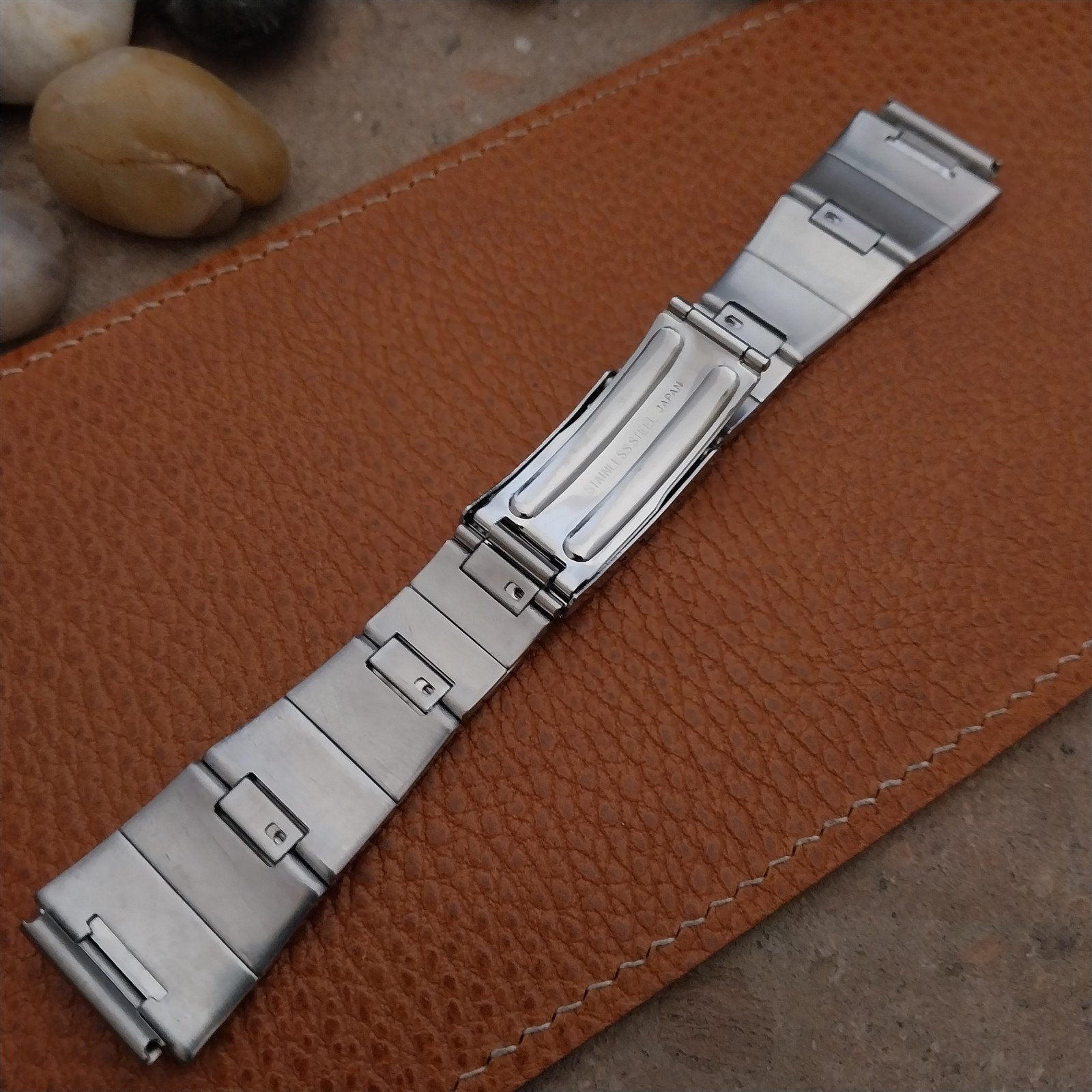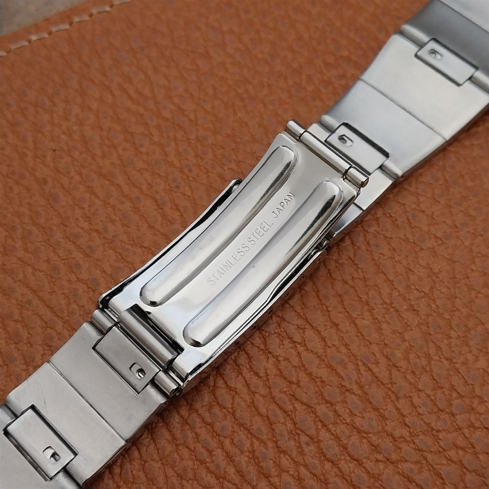 - NOS unused 1970s old-stock brushed folded link stainless steel deployment watch bracelet.