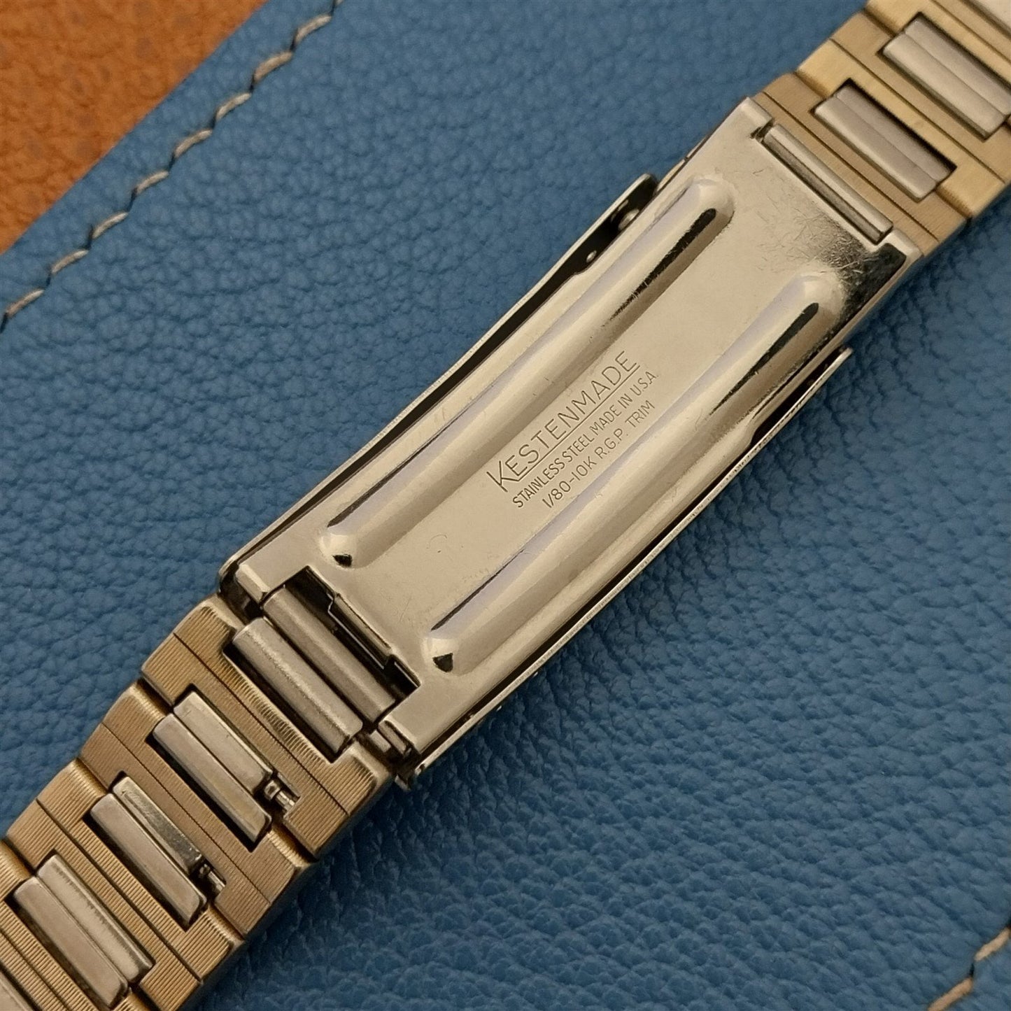 - NOS unused 1960s-1970s old-stock Kestenmade USA silver stainless steel & pale 1/80 10k yellow gold rgp folded-link watch bracelet.