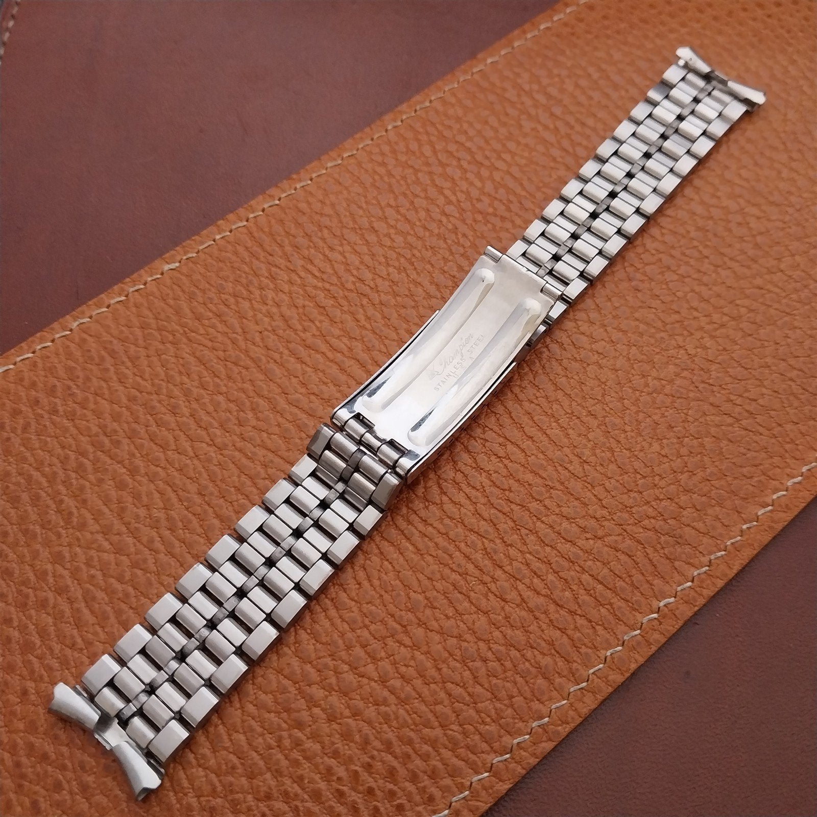 - NOS unused old-stock 1972 JB Champion stainless steel & black deployment watch bracelet.