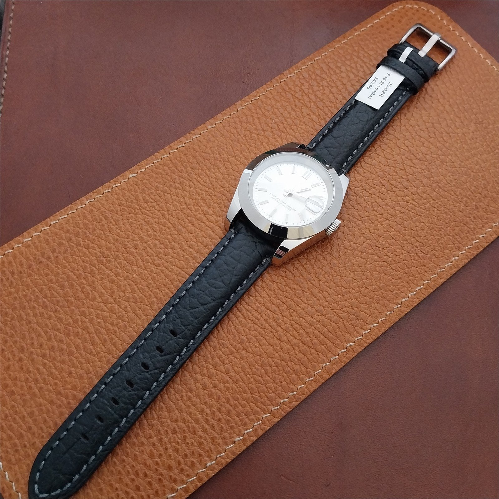 20mm Black Camel Leather Semi-Padded Tapered 20/18 Watch Strap