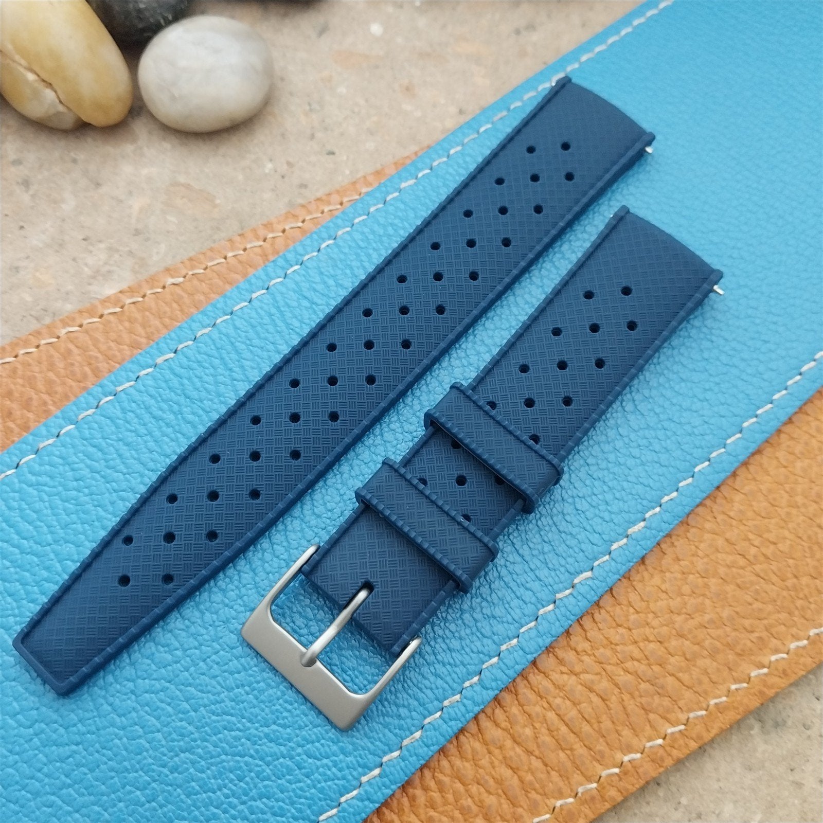 20mm FKM Blue Tropical Divers Watch Strap QR Spring Bars Bead Blasted Buckle